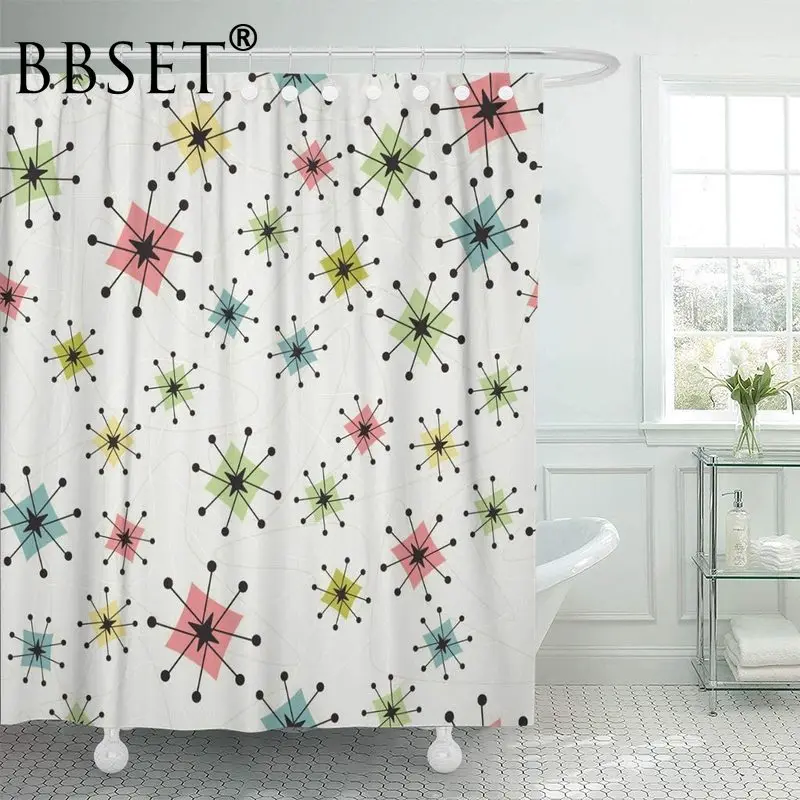 Винтажная душевая занавеска с атомными звездами ретро на бумерангах с рисунком средней центры Водонепроницаемая многоразмерная занавеска для ванной комнаты
