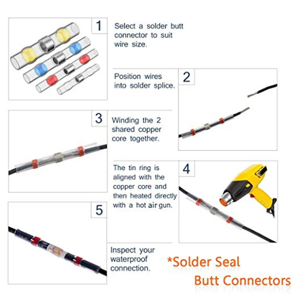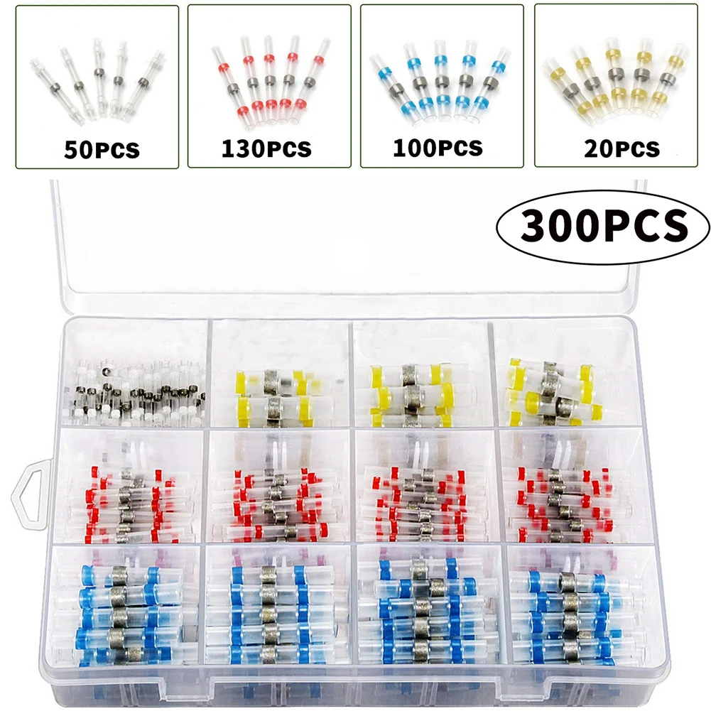 TKDMR 300 шт Смешанные Термоусадочные Соединительные Клеммы Водонепроницаемая трубка для припоя электрические провода изолированные стыковые соединители комплект
