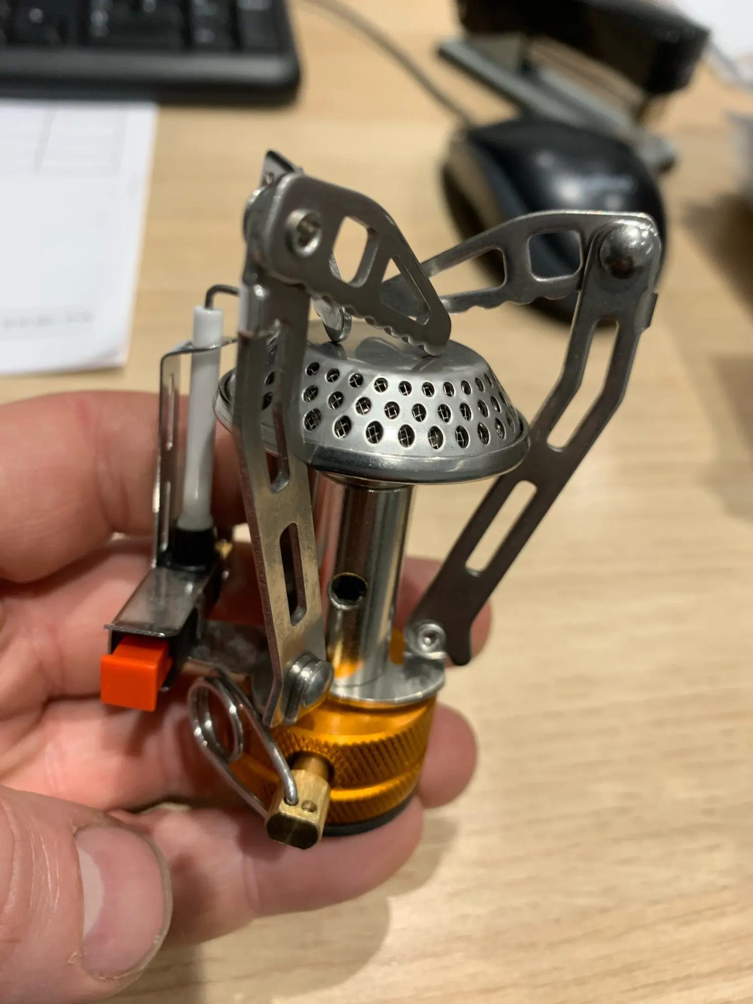 Доставка товара в Альметьевск заняла ровно месяц. Пришло в мелком пакете, всё в порядке. Отличная горелка, была в чехольчике, хотя у других поставщиков видел в контейнере, есть пьезоподжиг, используется с резьбовыми баллонами. Конструкция надёжная, лапки довольно жёсткие, регулятор подачи газа плавный. Конфорка сделана таким образом, что пламя идёт не ровно вверх, а более распределено по нагреваемой площади. Пока тест проводился только в домашних условиях, итог такой: 0,5 л воды в открытой кружке, на не полной мощности закипели примерно через 8 минут. При использовании до красна прогревается контакт поджига, думаю со временем прогорит. Сама горелка так же не слабо нагревается, после выключения минут 10 лучше не трогать. Хотя в зимнее время это скорее плюс, от горелки будет прогревается и газовый баллон. В целом впечатления в основном положительные, думаю после полевых испытаний дополню отзыв, а пока товаром доволен, продавца рекомендую.