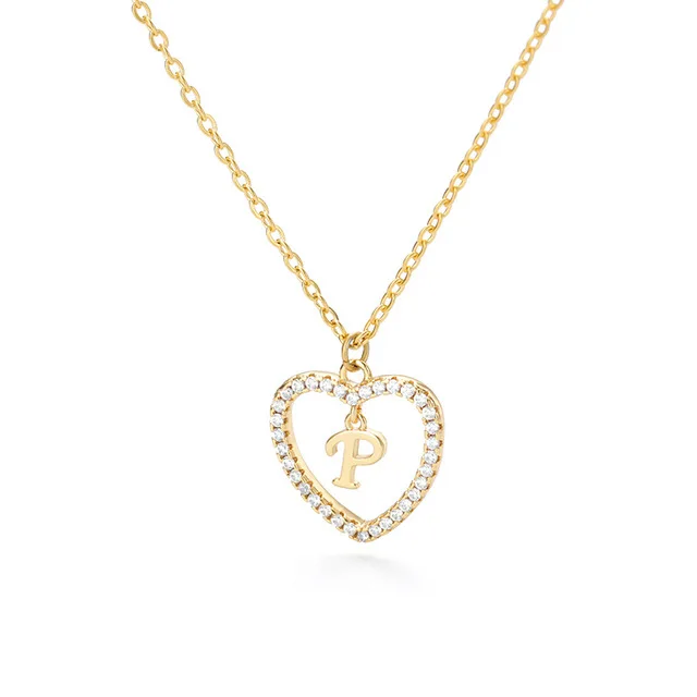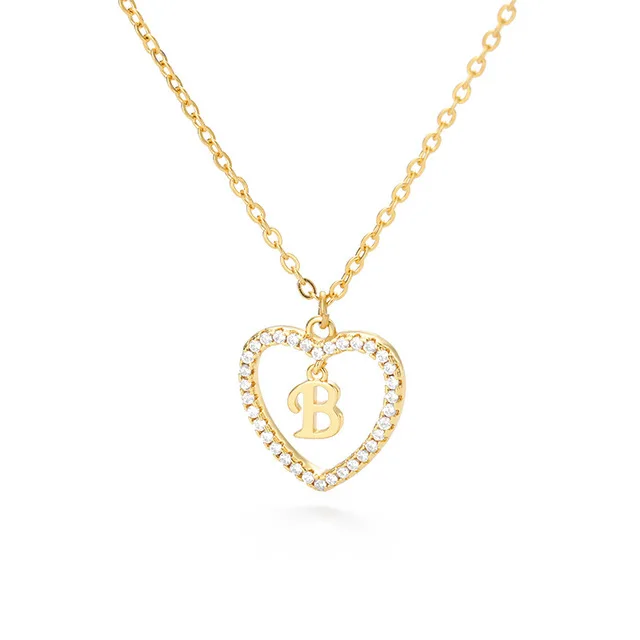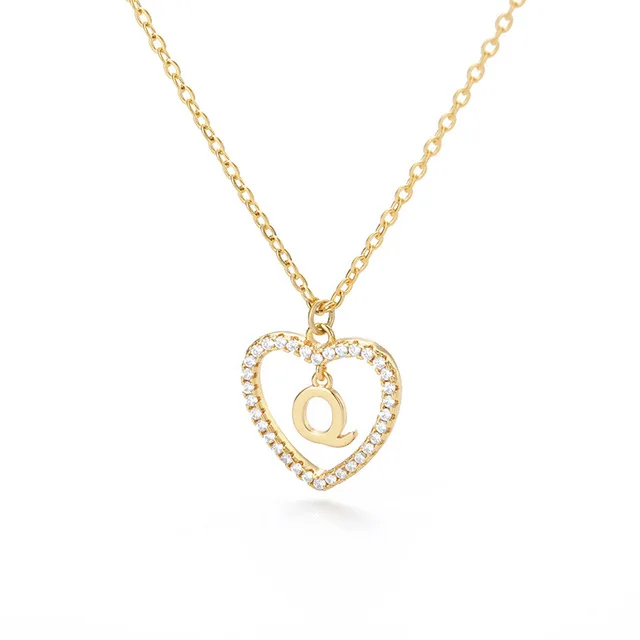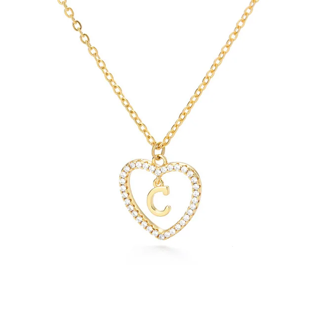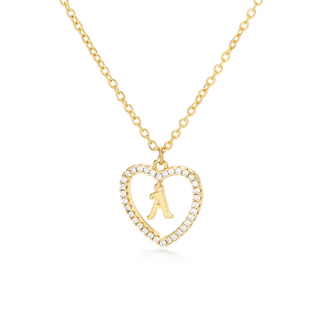 Женское ювелирное изделие, ожерелье с подвеской в форме сердца с инициалами имени и 26 буквами, сверкающие кубические циркониевые кристаллы, ожерелья для влюбленных, аксессуары с буквами