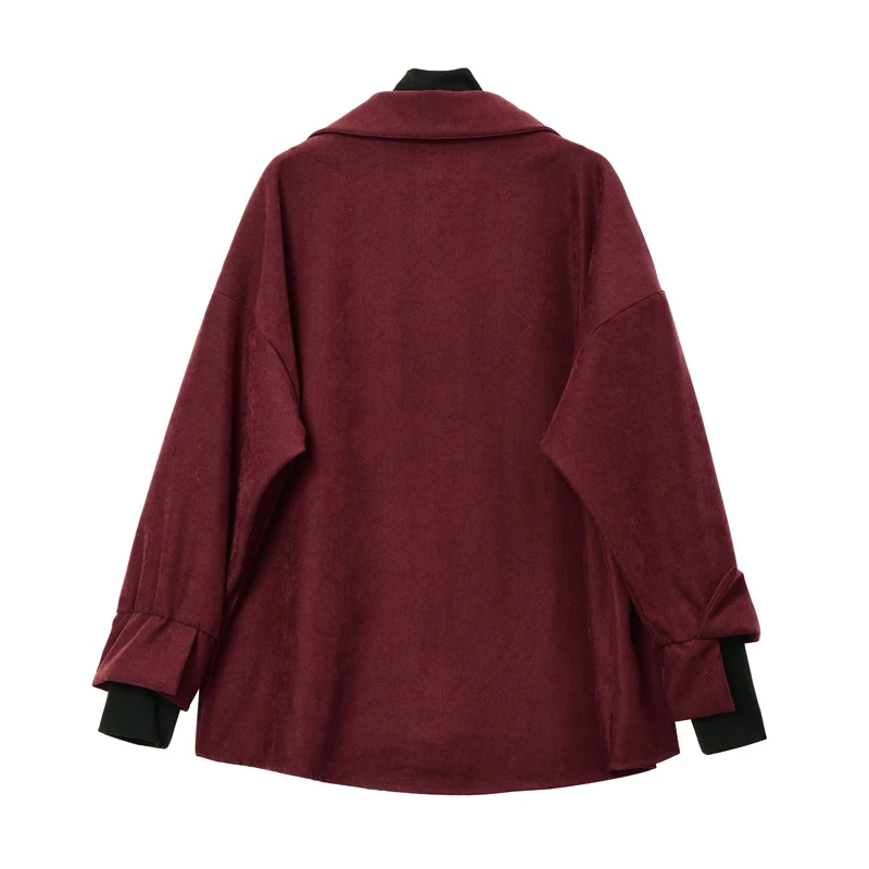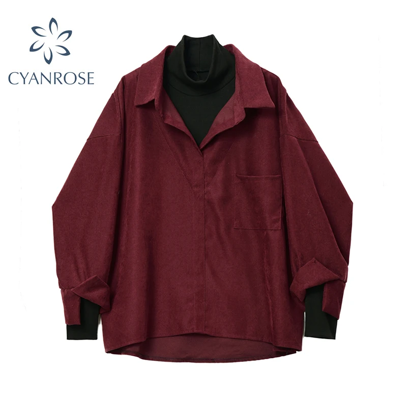 Рубашка из искусственной двух частей, Женская Лоскутная водолазка с отложным воротником, осенне-зимняя повседневная женская Свободная блузка с длинным рукавом, топы
