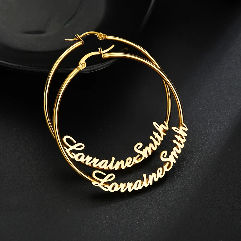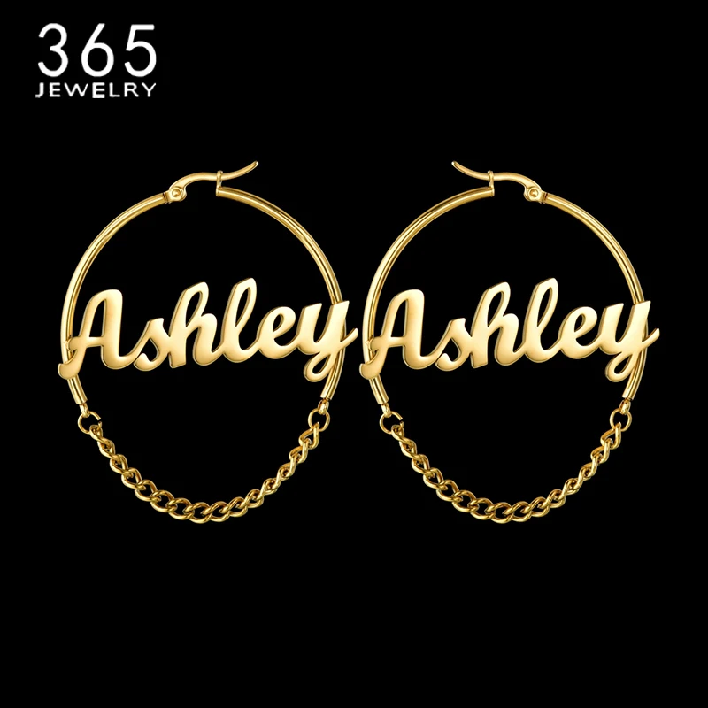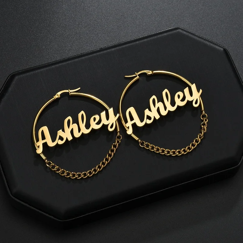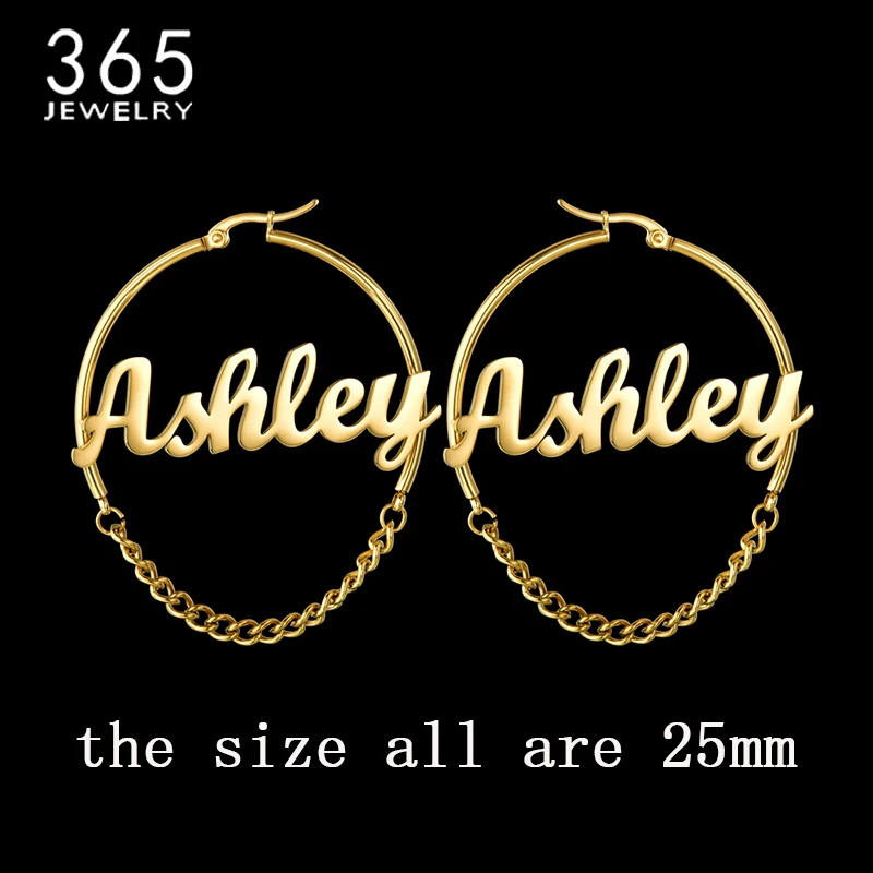 Новые модные персонализированные индивидуальные серьги, размер 25 мм, именная цепочка, индивидуальная именная табличка, серьги-кольца, женские вечерние, подарок