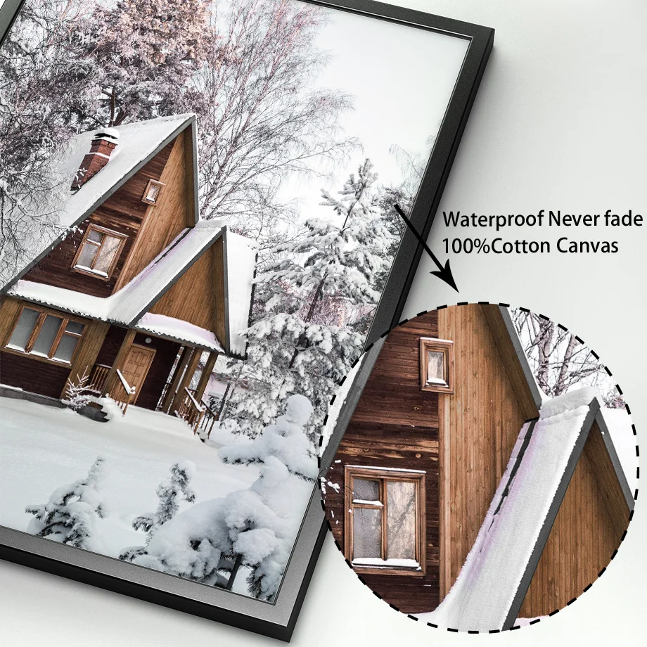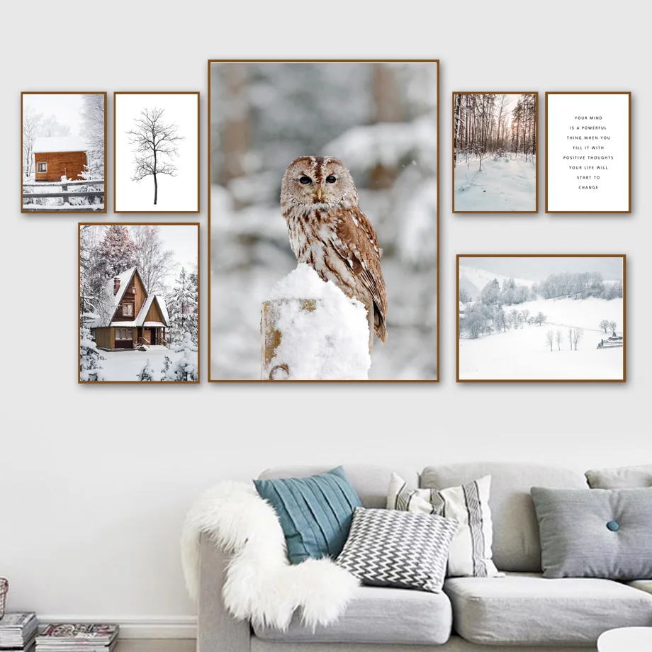 Снежный лес дом дерево сова лиса пейзаж настенная живопись холст картина Скандинавская картина настенные картины для гостиной Декор