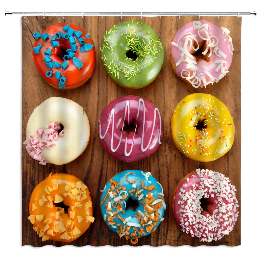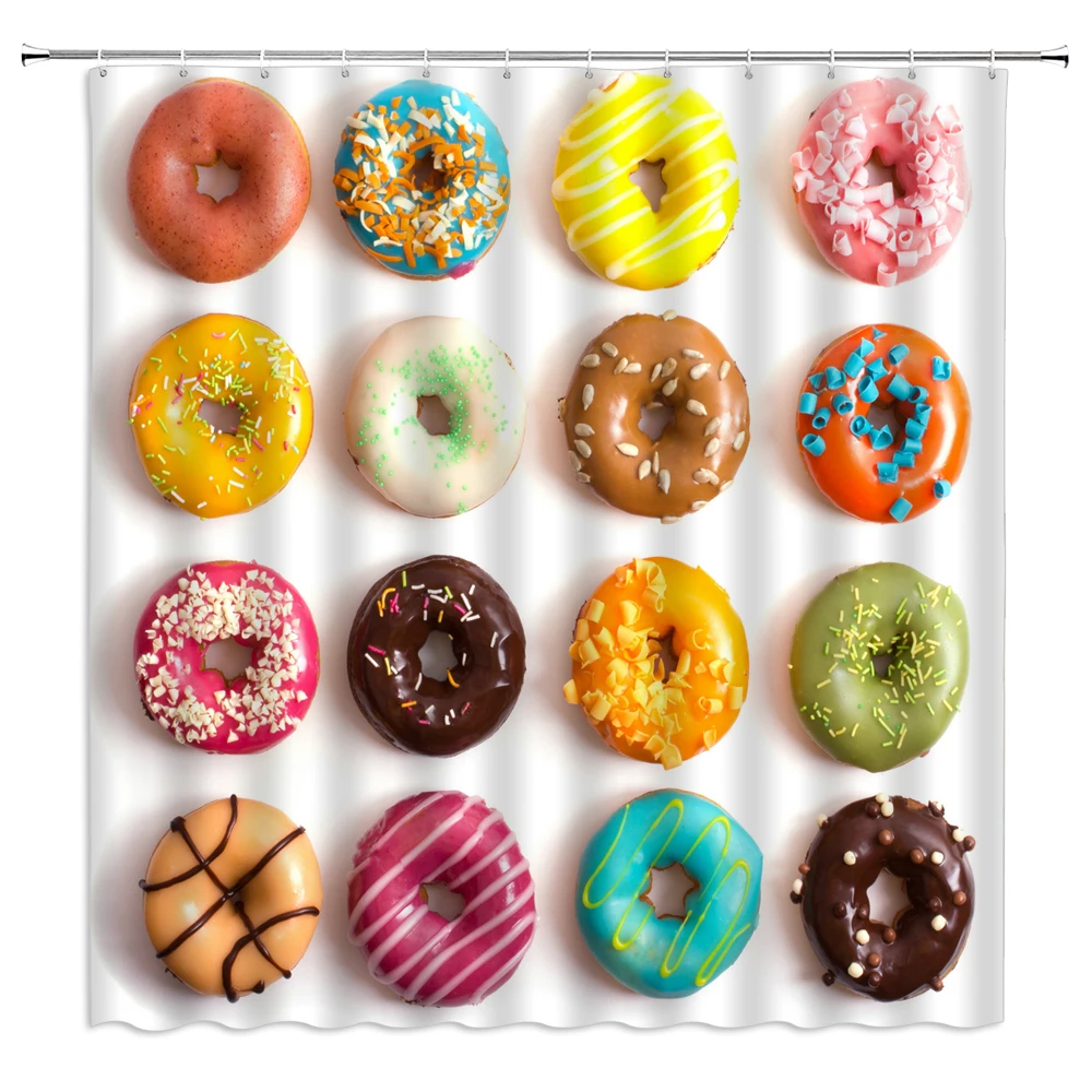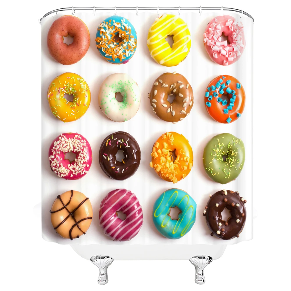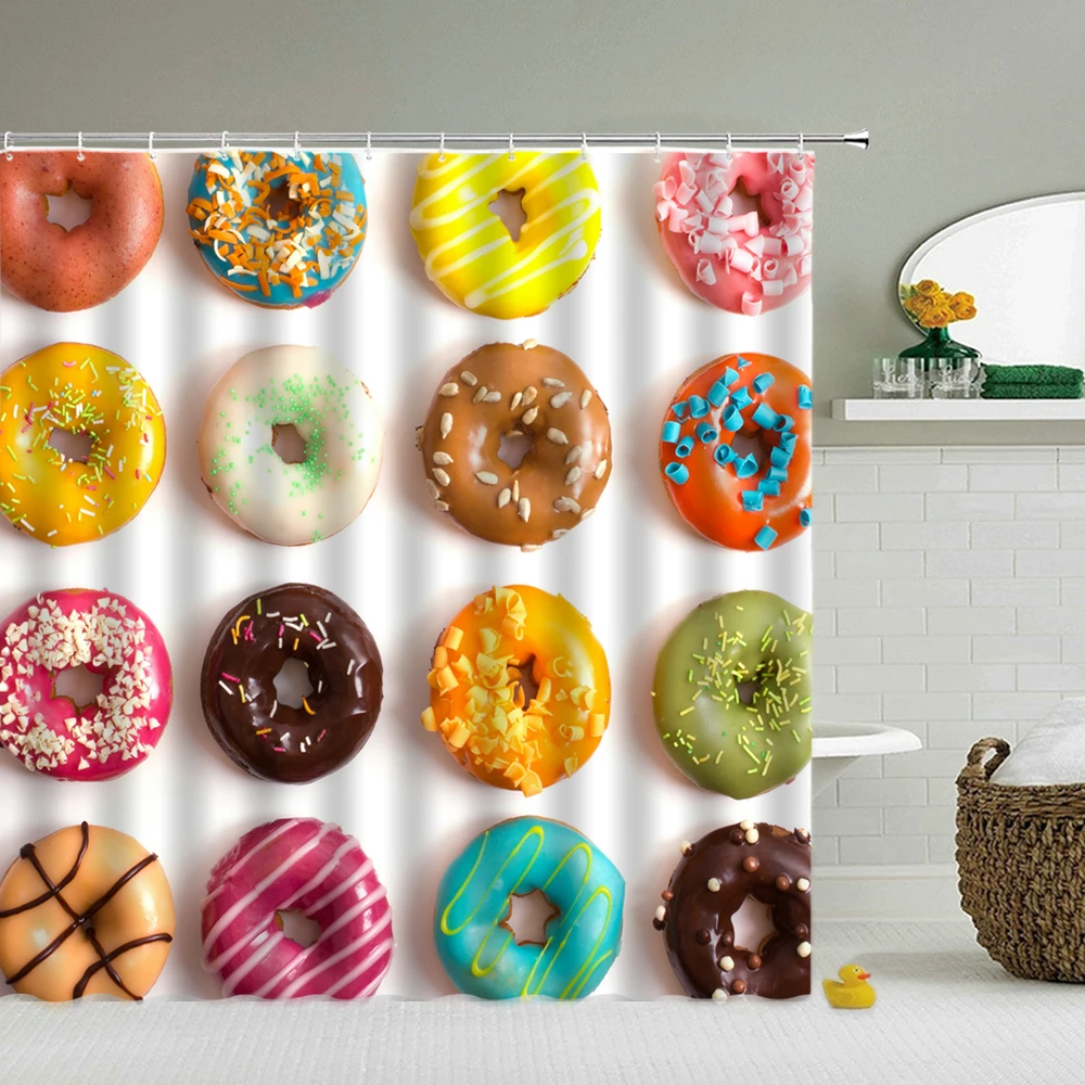 Розовые пончики для девочек, 3d занавески для ванной, занавески для душа, водонепроницаемые с крючками, украшения, моющийся экран для ванны