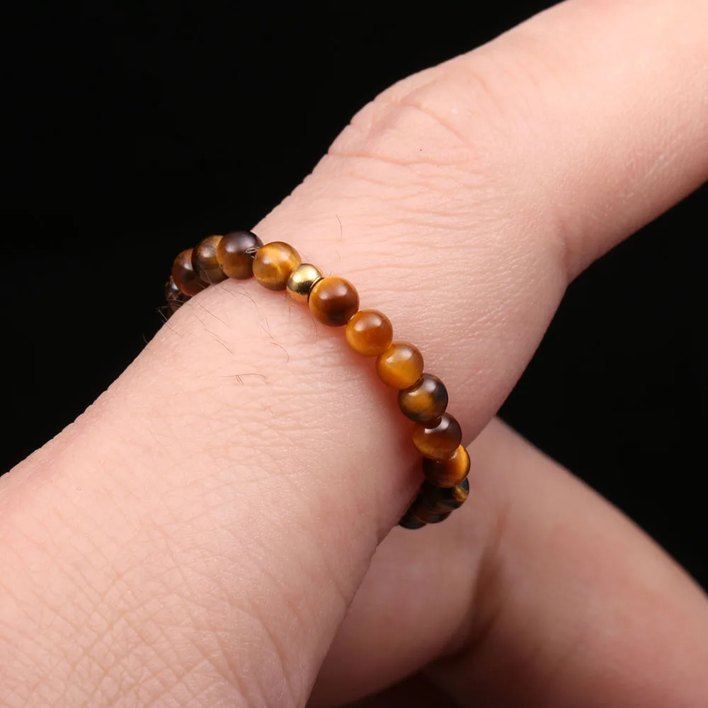 Кольцо с бусинами из натурального камня для мужчин и женщин, эласти...