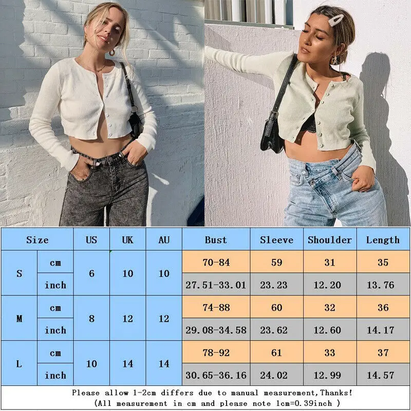 Женский вязаный кардиган, короткий топ с длинным рукавом и свитера с пуговицами