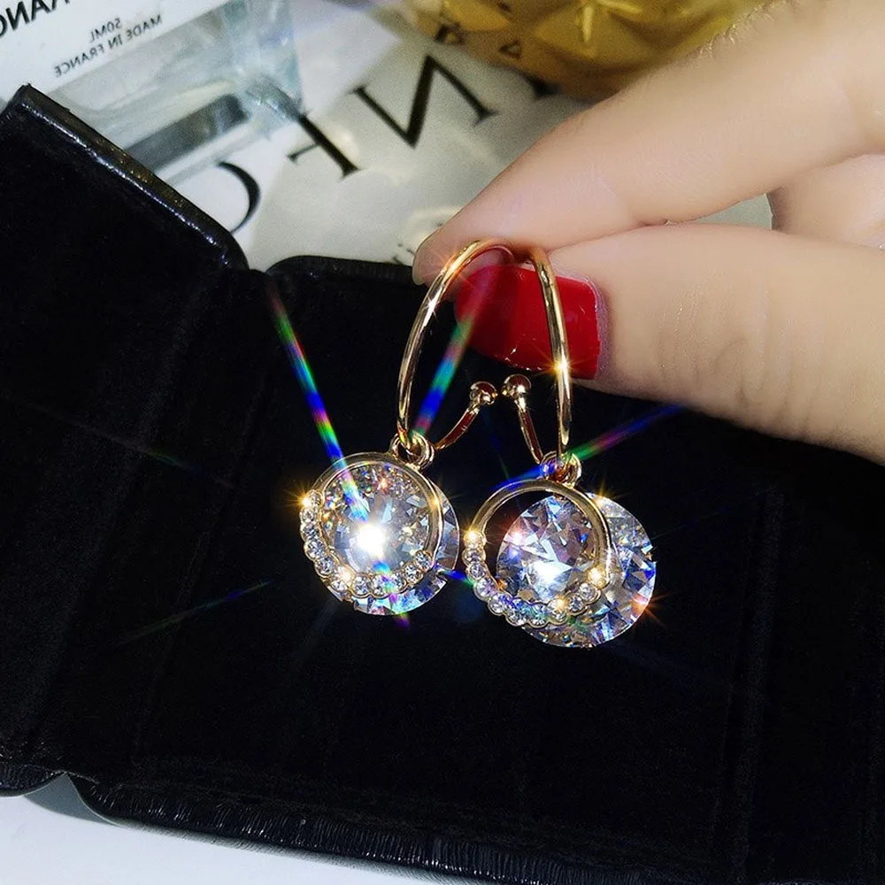 2020 корейские круглые серьги, Классические Кристальные Висячие серьги для женщин, ювелирные изделия, милый геометрический маленький кулон, новый тренд