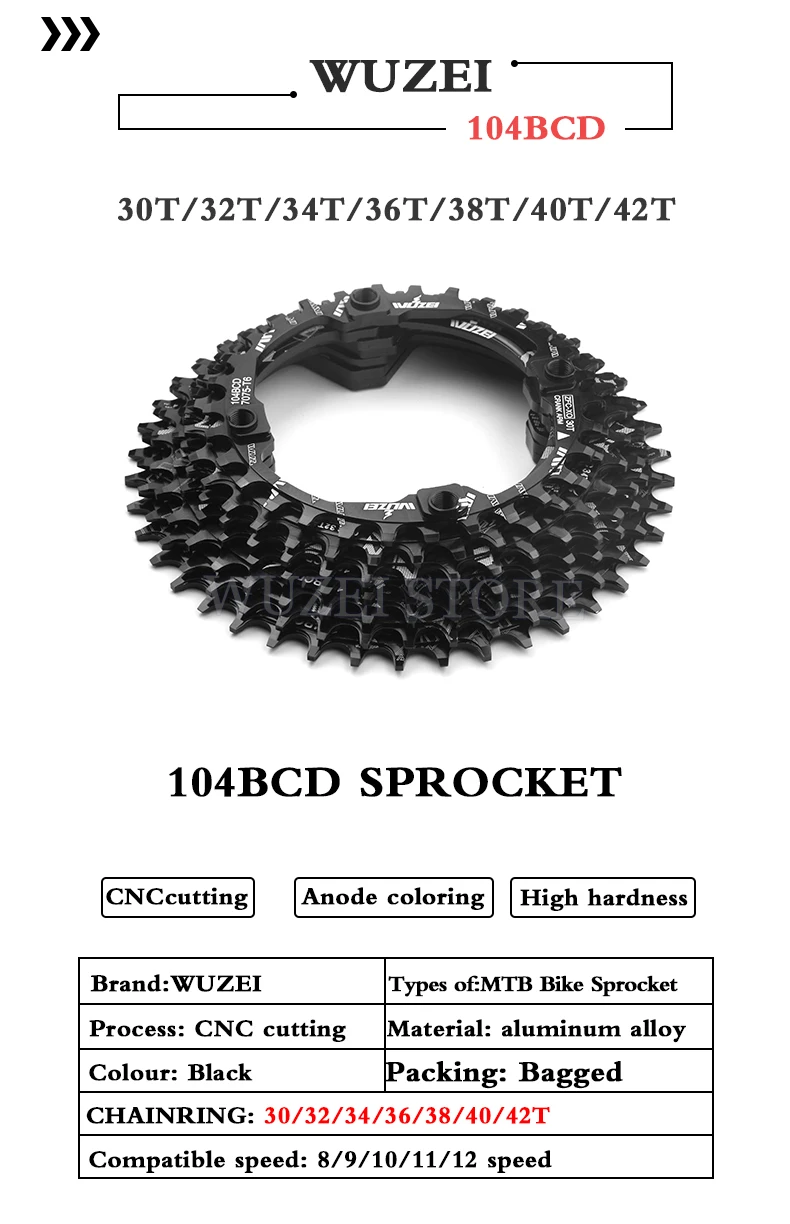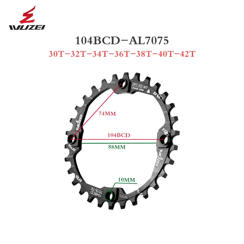 Круглая Звездочка 30T, 32T, 34T, 36T, 38T, 40T, 42T, 44T, 46T, 48T, 50T, 52T, узкая широкая цепная цепь, детали для горного велосипеда