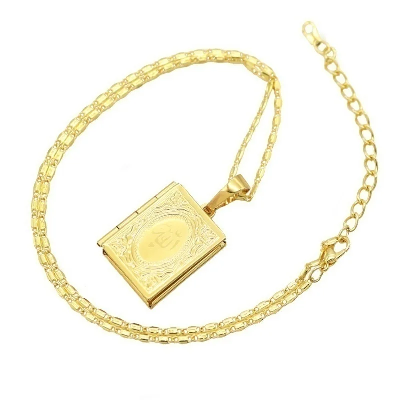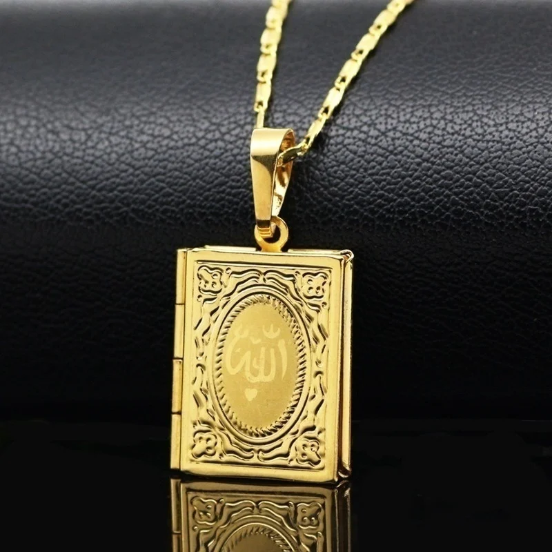 Золотой цвет Ислам Аллах мусульманское ожерелье Коран книга открыва...