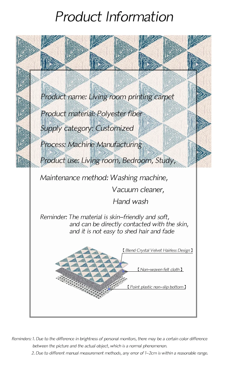 1. Ковровая ткань: ковер изготовлен из трех слоев ткани, напечатанный и окрашенный короткий ворсовый поверхностный слой, Нетканая ткань в среднем слое, нижний слой полностью прилегает к нескользящей подошве.2. Толщина ковра: дизайн трехслойной ткани делает наши ковры толще, чем другие ковры, мягкие и нескользящие, длительный срок службы, и не легко деформируется.3. Ковер не имеет специфического запаха: 0 формальдегид, безопасный и без специфического запаха, мягкая ткань ковра используется для детей, чтобы играть на ковре.4. Легко ухаживать: короткий ворс делает наши ковры легко ухаживать, и пыль не легко застревать на ворсе. Его нужно только регулярно пылесосить или очистить.5. Качество ковров: наши ковры имеют лучшее качество, чем обычные ковры, с толстой толщины, хорошая ткань, мягкая и приятная для кожи, легко ухаживать, нулевой формальдегид, нет специфического запаха, никакого вреда для человеческого тела, и ковры высокого качества имеют более длительный срок службы!