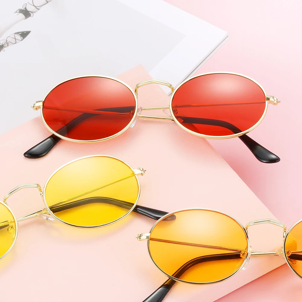 Винтажные маленькие овальные солнцезащитные очки в металлической оправе для женщин и мужчин, солнцезащитные очки UV400 в стиле ретро, летние пляжные очки для пеших прогулок