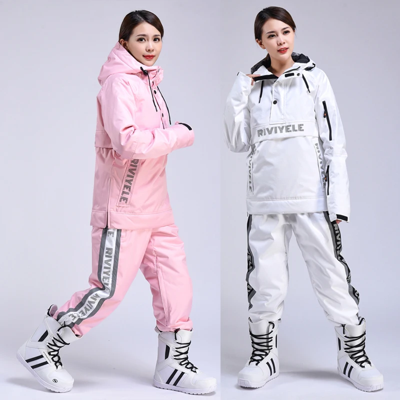 Женский лыжный костюм, дышащий, теплый, ветрозащитный, водонепроницаемый, куртка, лыжные штаны, Женский комплект с капюшоном, лыжные костюмы для сноуборда