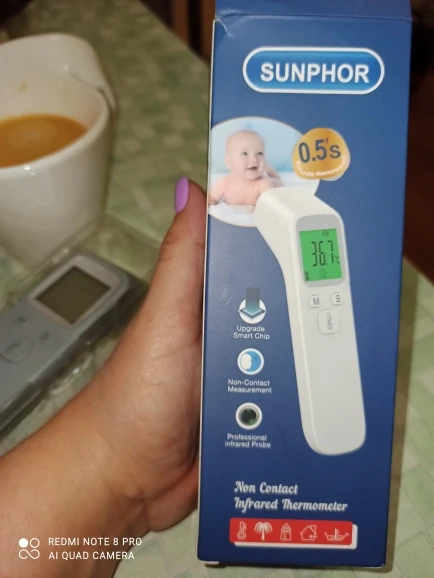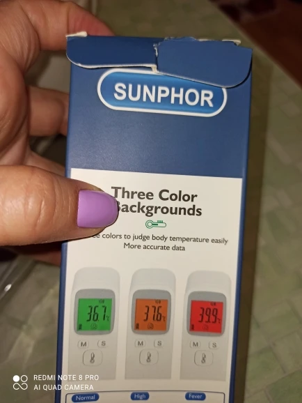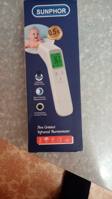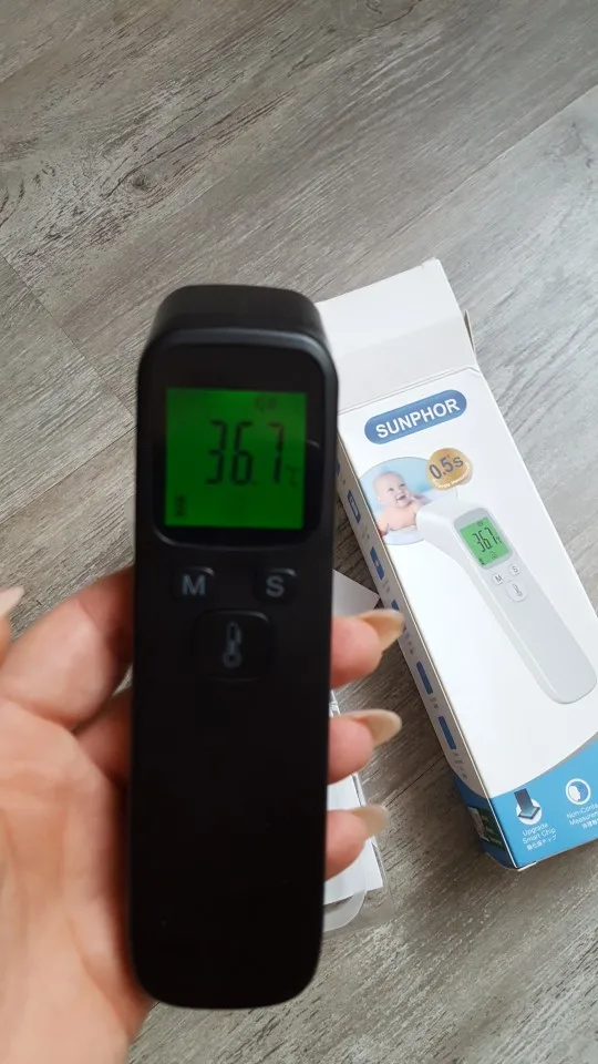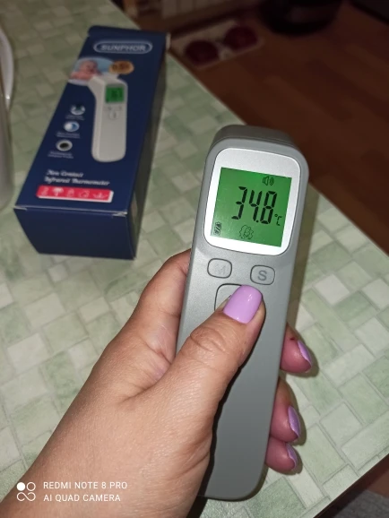 Термометр пришёл быстро, работает практически точно, измерение на лбу и подмышкой показывает разные значения, подмышкой завышено, в настройках можно скорректировать погрешность, на моем термометре погрешность 0.2. Не понравилось, что дисплей и пластмасса вокруг зонда с потертостями, обычно эти детали заклеены плёнкой у новой вещи, на функционал не влияет поэтому звезду не снимаю.