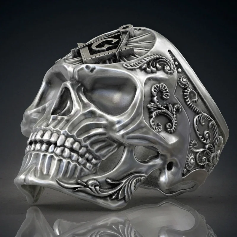 Новинка, массивное кольцо в форме черепа Ag с масонским узором, мужское кольцо, модное металлическое кольцо в форме черепа, аксессуары, ювелирные изделия для вечеринки, Размер 8 13