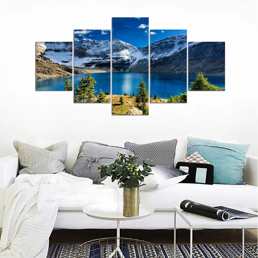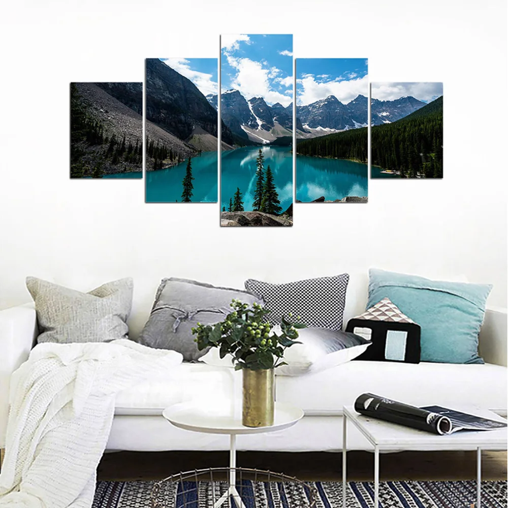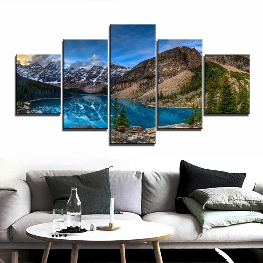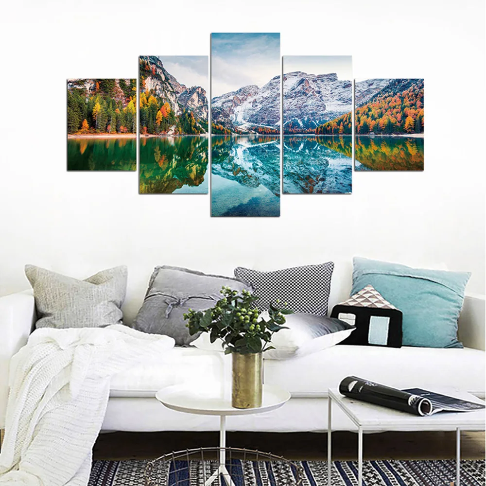 Картина с пейзажем, 5 шт., озеро, горы, холст, настенная живопись, плакаты с изображением деревьев современный природный пейзаж для гостиной