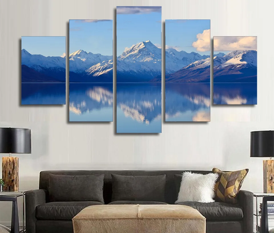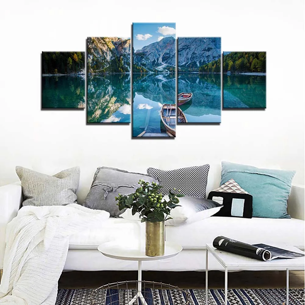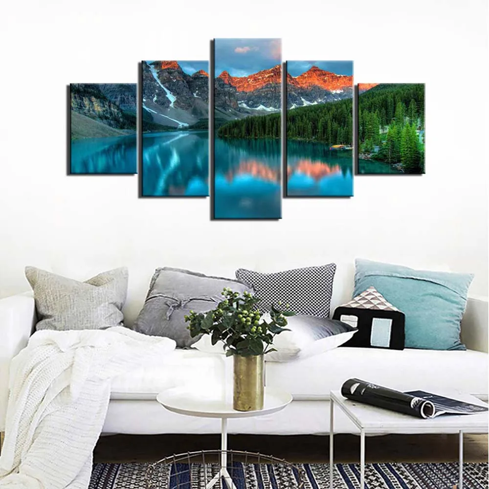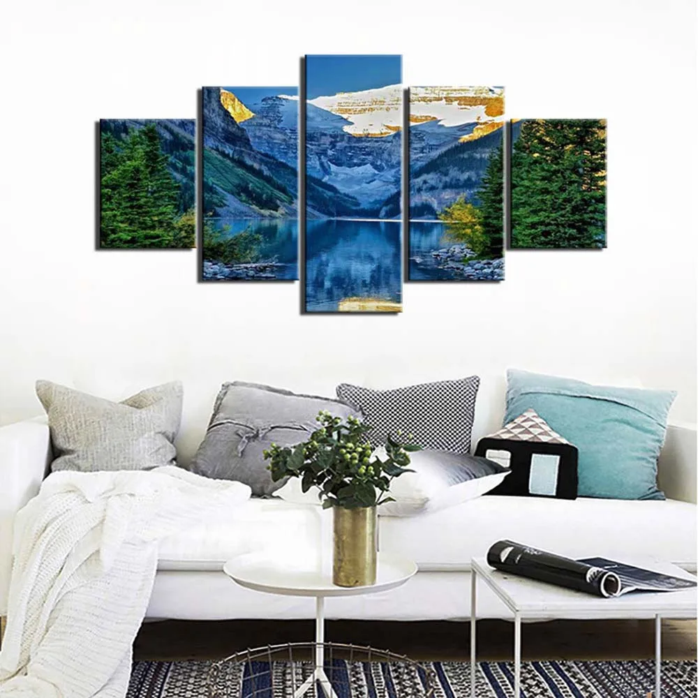 Картина с пейзажем, 5 шт., озеро, горы, холст, настенная живопись, плакаты с изображением деревьев современный природный пейзаж для гостиной