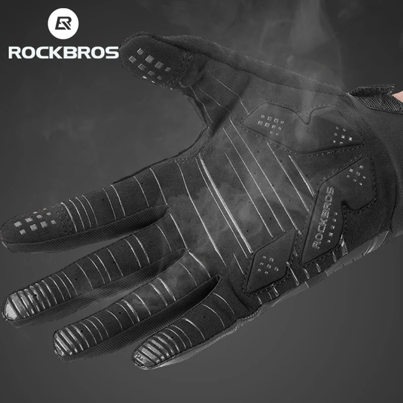 ROCKBROS перчатки для велоспорта ветрозащитные дышащие мужские женские мужские полный палец велосипедные MTB перчатки противоскользящие велосипедные амортизирующие перчатки