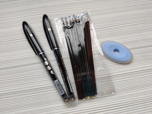 Заказ получила. Посылка шла 11 дней. В заказе 1 ручка, несколько стержней и старательно резинка. Её лучше не использовать. слишком жёсткая. ручку стирает обычная стирателная резинка. Я однозначно закажу ещё! может я ошибаюсь, но для начальной школы это самое то. продавцу спасибо за скорость отправки.