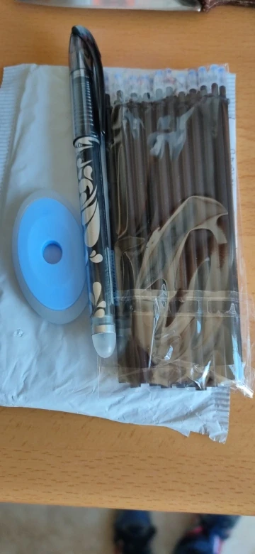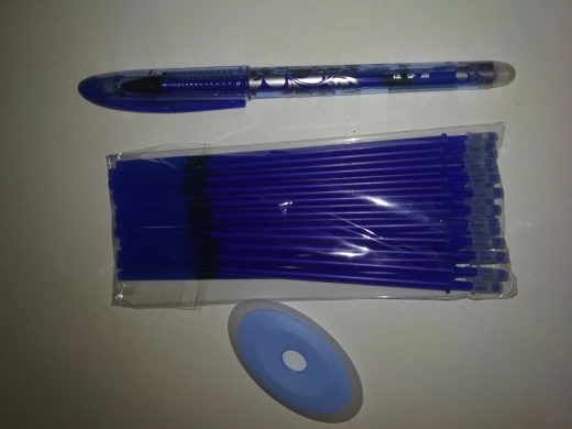 Заказ дошел за 2,5 недели до Москвы, трек отслеживался. Чернила хорошие, действительно стираются. На бумаге после стирания следов не остаётся, разве что от нажима на бумагу при письме видно след. Продавца рекомендую.
