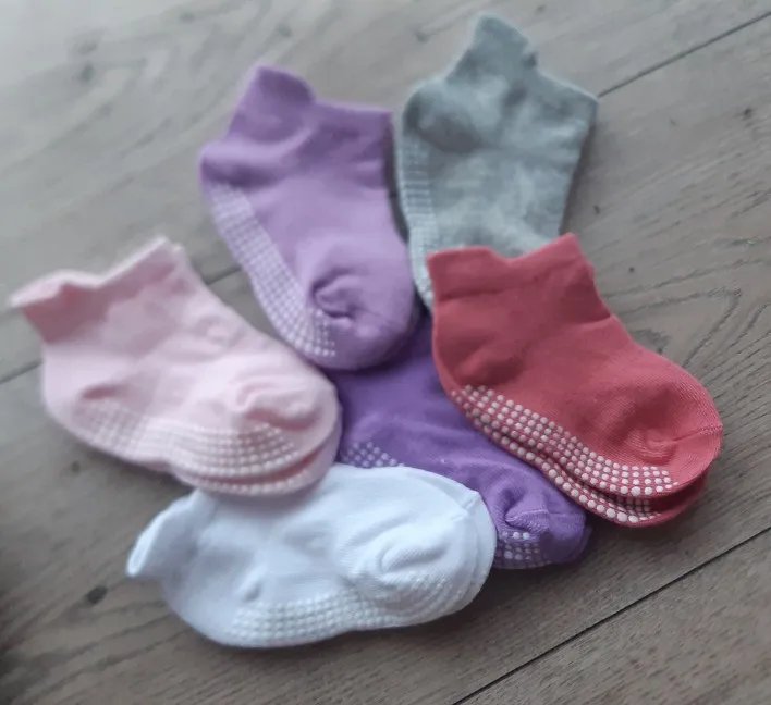 Носки хлопковые с резиновыми захватами, для мальчиков и девочек, 6 партЛот, всесезонные, Нескользящие