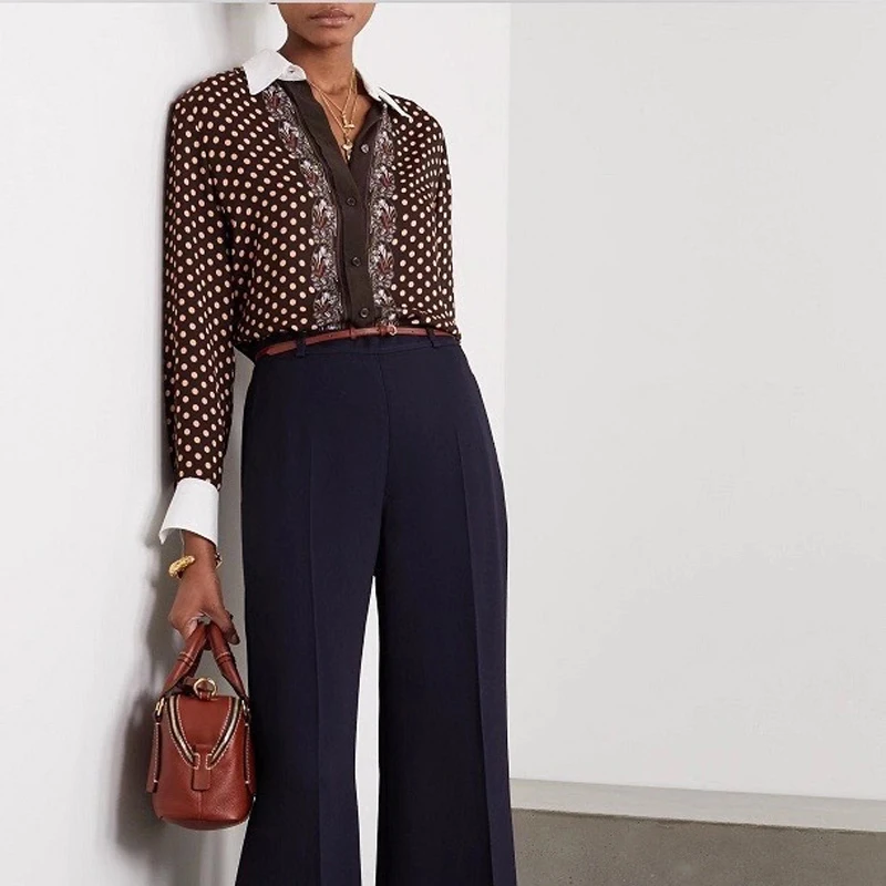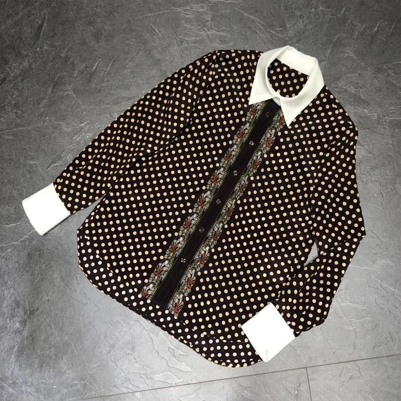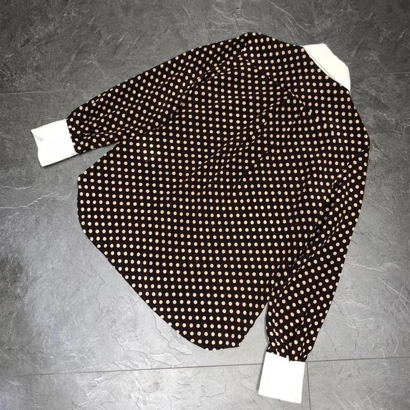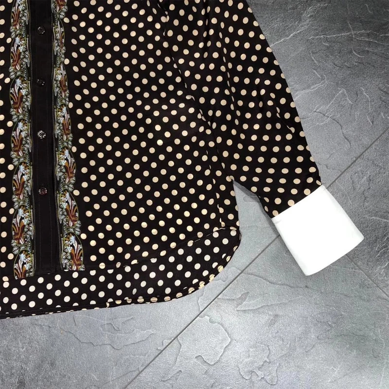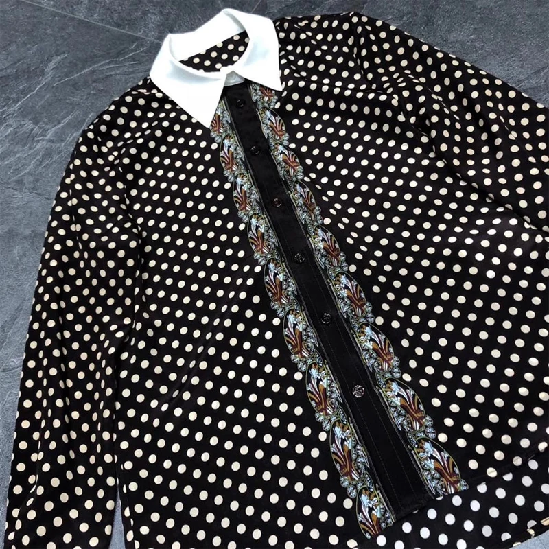 Женская рубашка высокого качества, блузка в горошек, женские блузки, 100% шелк, лоскутные рубашки