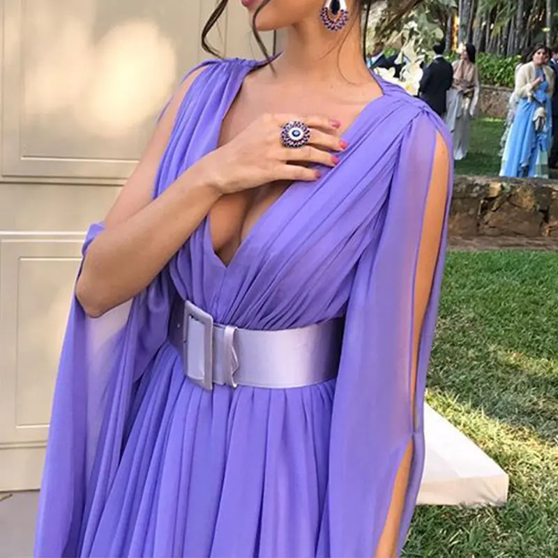 Платье женское длинное с V-образным вырезом, пикантное официальное свадебвечерние платье для вечеринки, выпускного вечера, платье подружки невесты, длинное фиолетовое платье-макси с длинным рукавом
