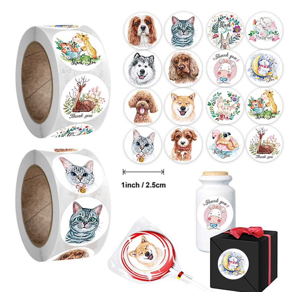 Милые наклейки, 100-500 шт., наклейки в виде животных, спасибо, кро...
