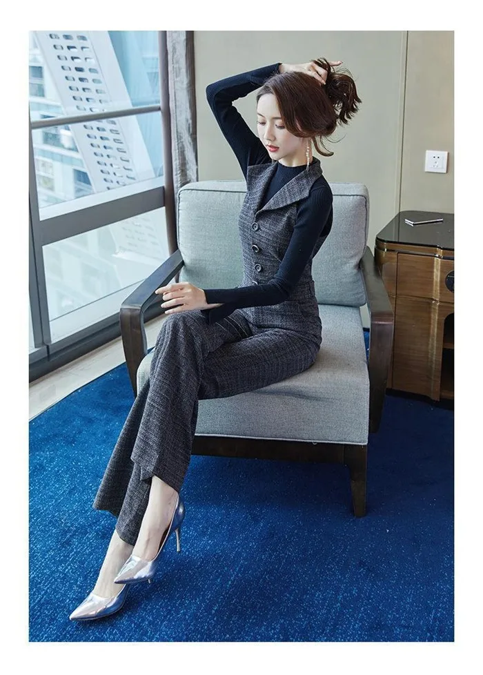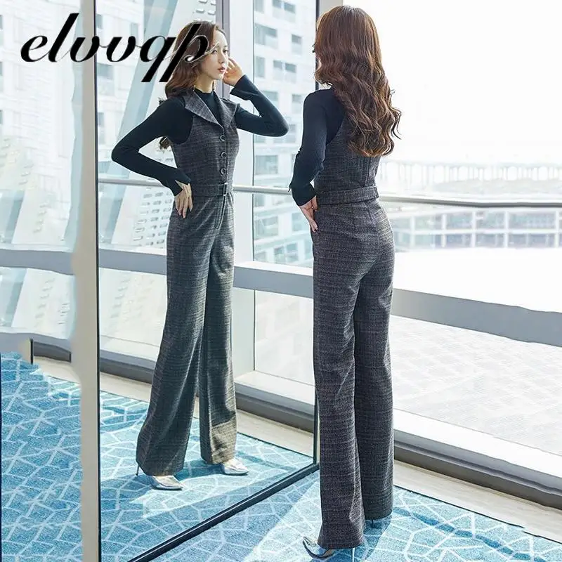 Комбинезон женский шерстяной с широкими штанинами, офисный элегантный деловой костюм, модная одежда, весна