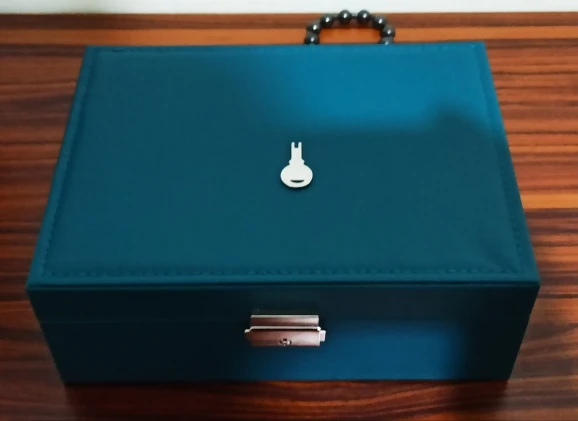 Шкатулка прибыла вчера. Упакована просто замечательно: сначала в пенопласт, а поверх его в картонную коробку. Так что оказалась в идеальном состоянии. Замок работает, ключик на месте. Теперь все украшения будут скомпонованы в одном месте и, в то же время, разложены по местам. Благодарность продавцу и пожелания здоровья и счастья в Новом году.