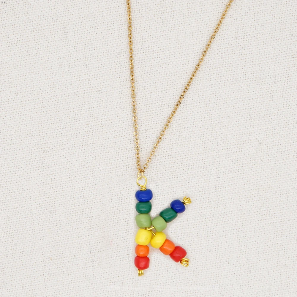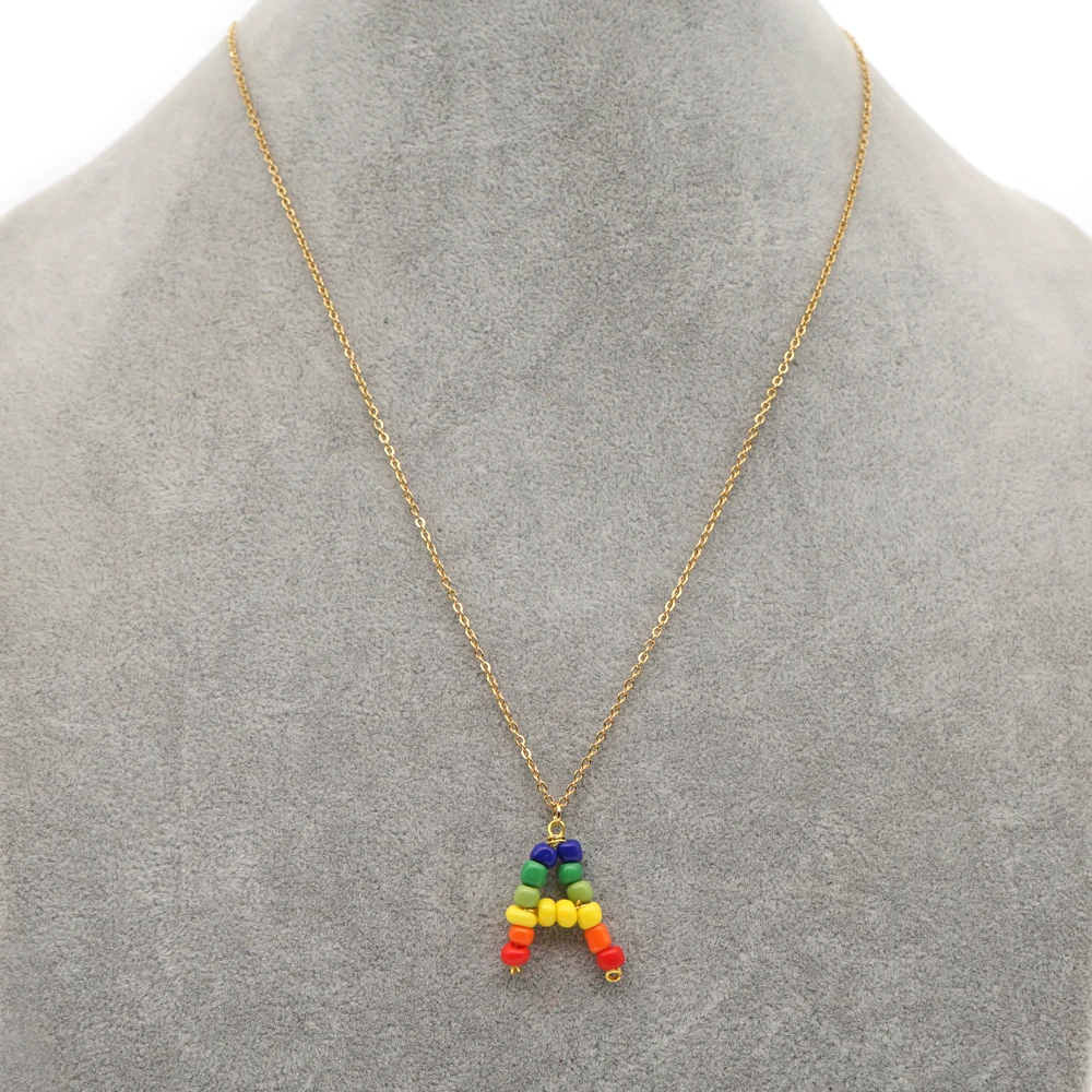 Цепочка Go2Boho из нержавеющей стали, ожерелья, ювелирные изделия в стиле бохо 2020, ожерелье с радужной подвеской для женщин, бусины ручной работы с буквами A до Z