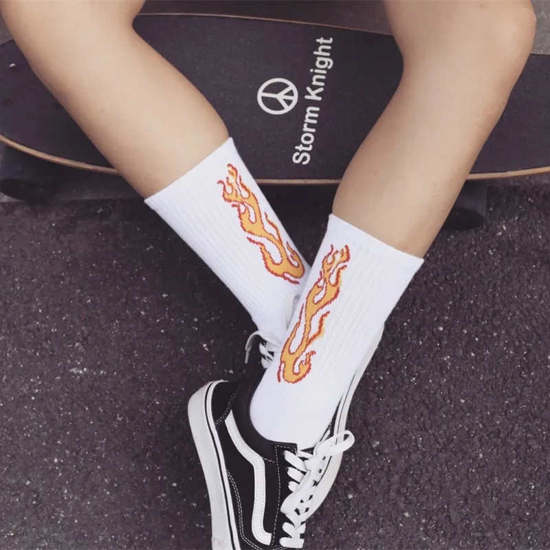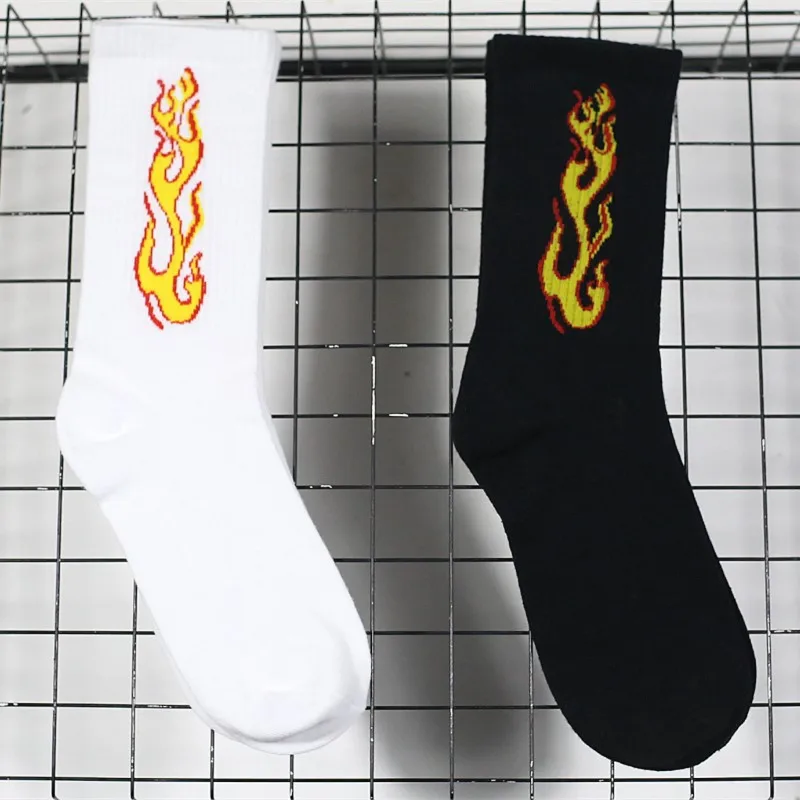 Мужские модные носки в стиле хип-хоп, яркие цвета, с красным пламен...