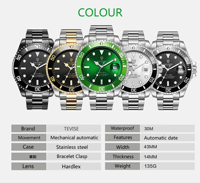 Мужские механические часы ведущей марки TEVISE T801A Автоматическая...