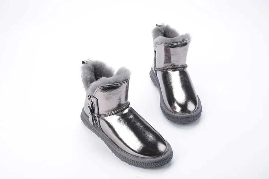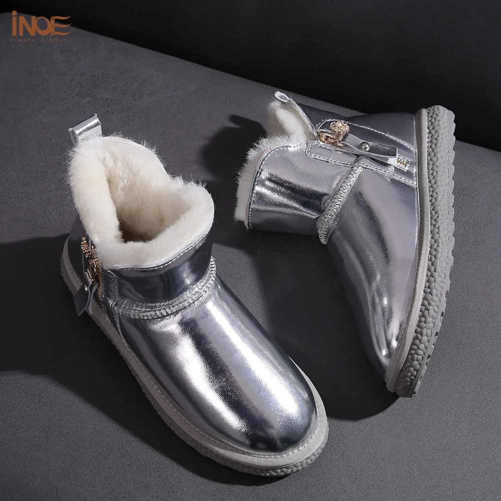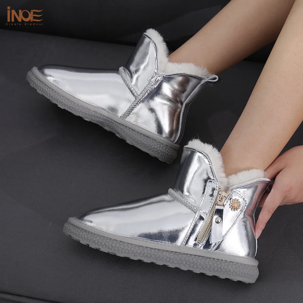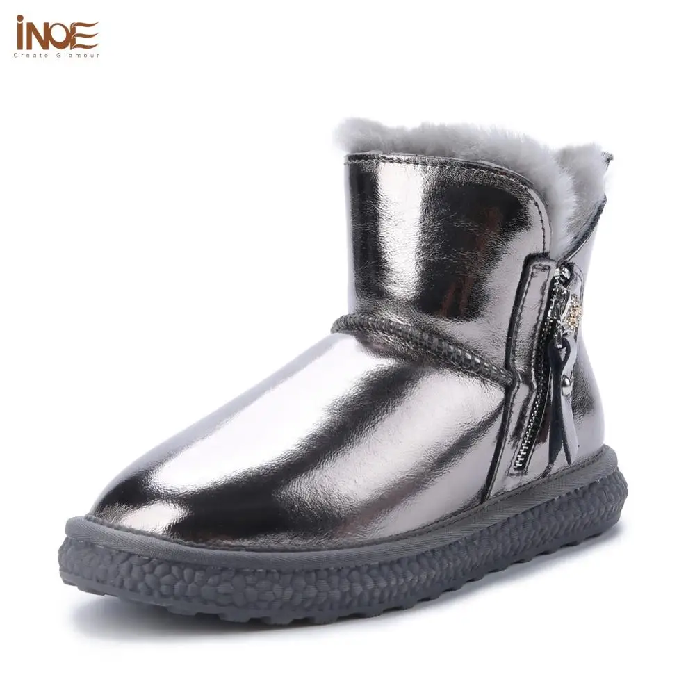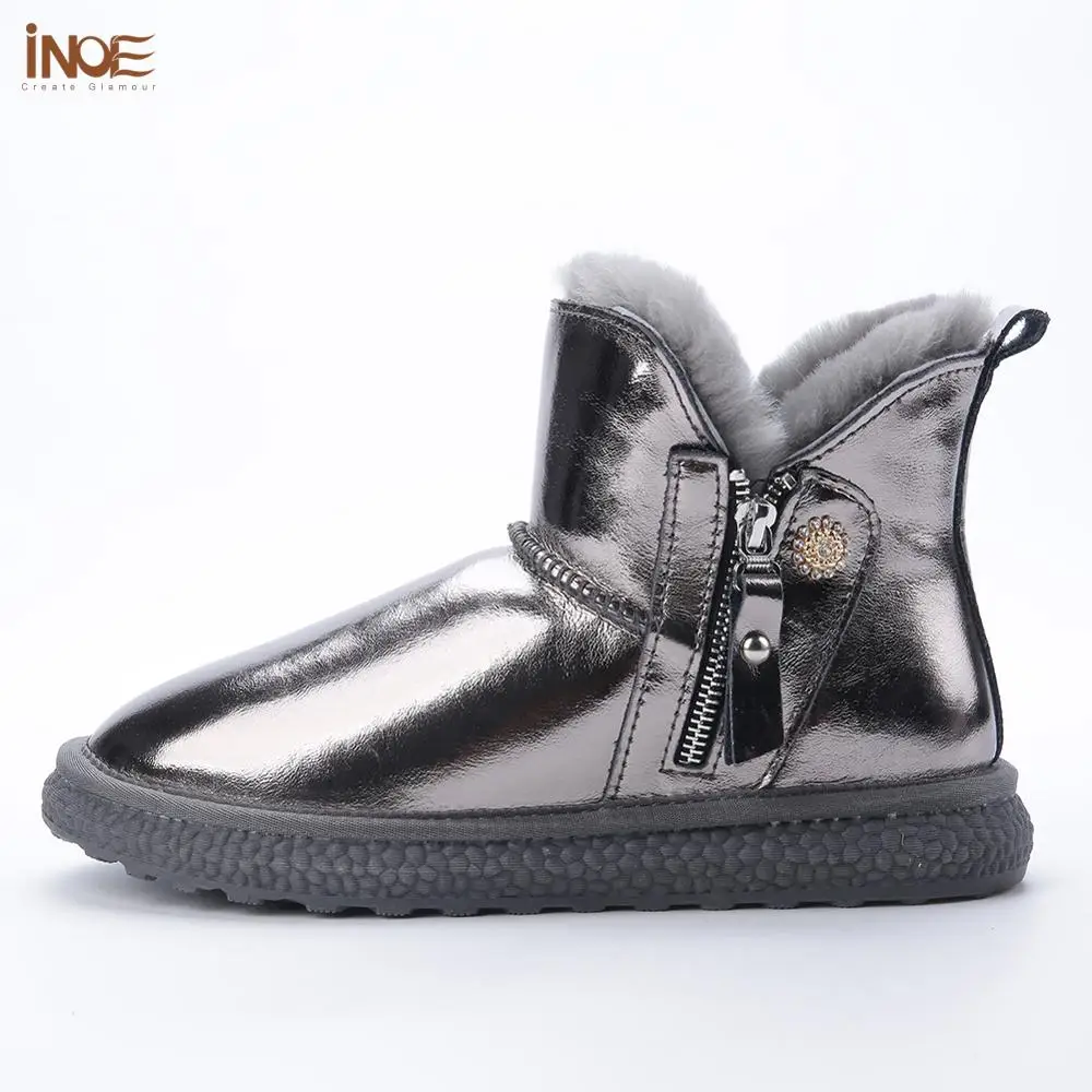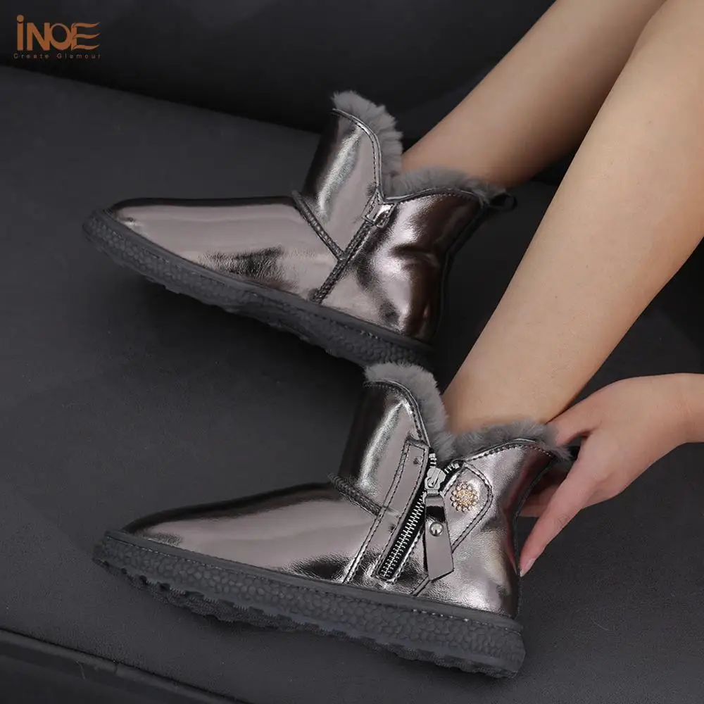 INOE модные женские зимние зимние сапоги на подкладке из натурального меха овец, повседневная теплая обувь из натуральной кожи, непромокаемые туфли на плоской подошве с молнией, черный