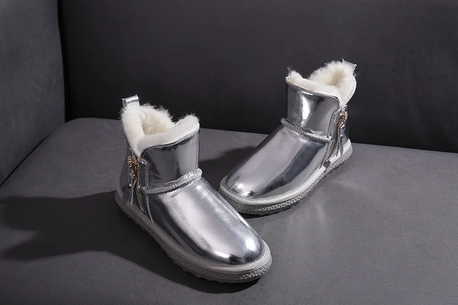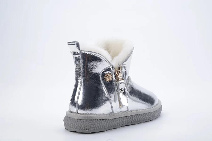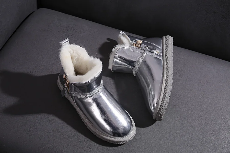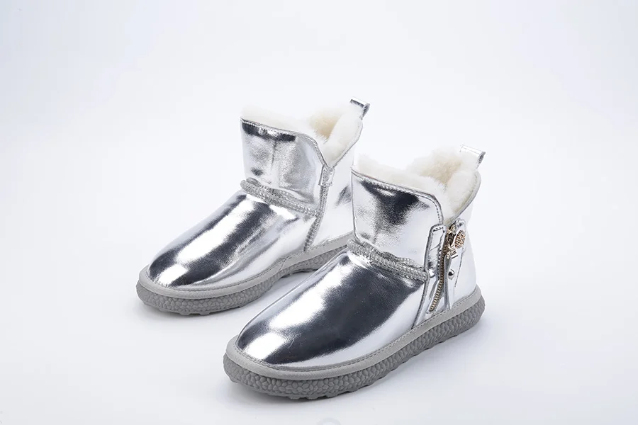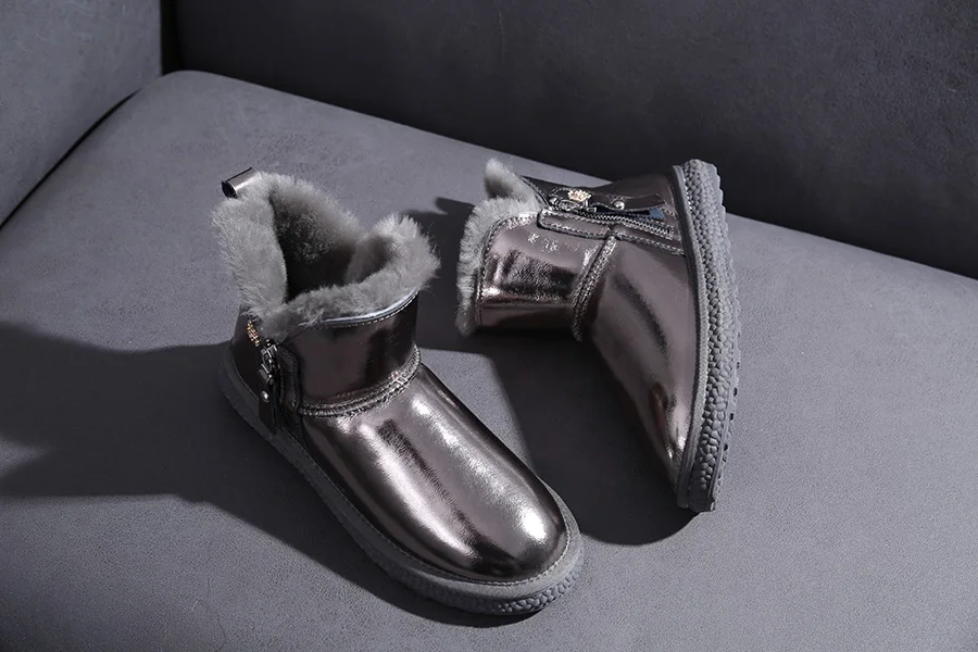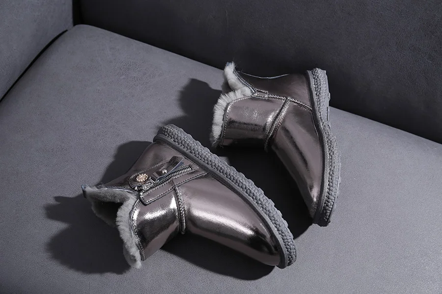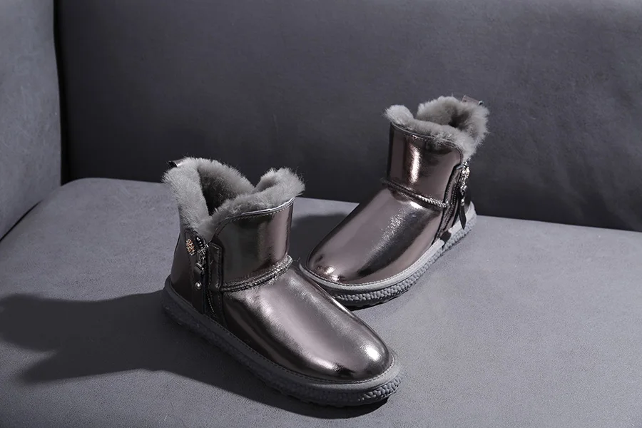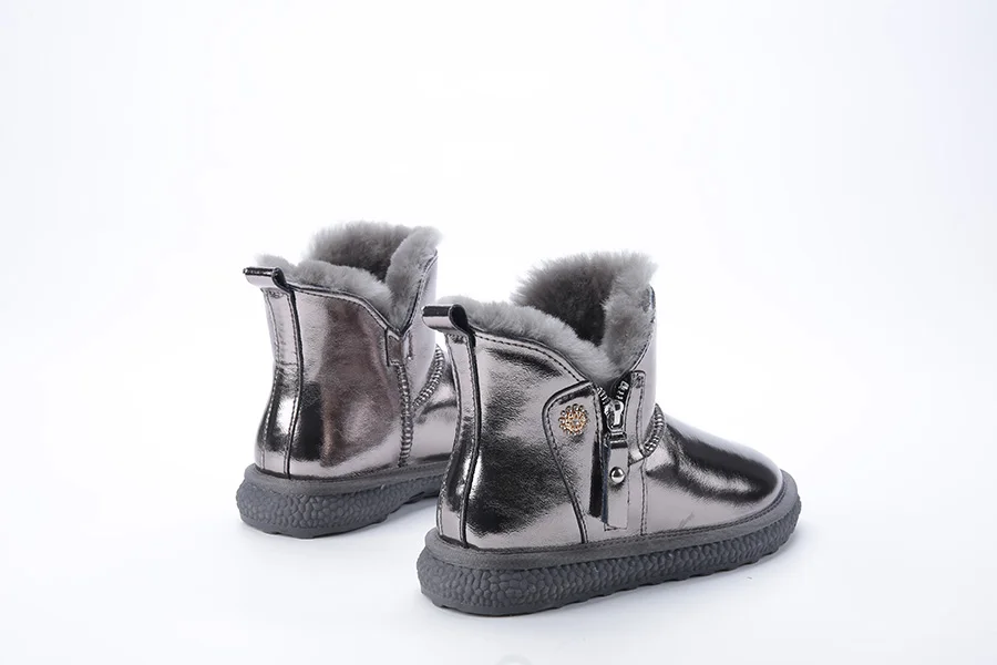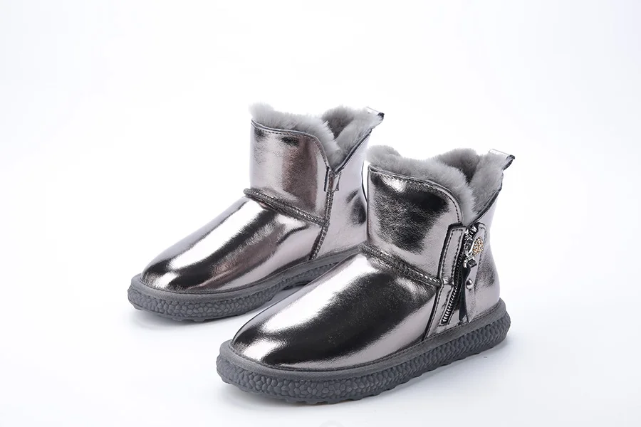 INOE модные женские зимние зимние сапоги на подкладке из натурального меха овец, повседневная теплая обувь из натуральной кожи, непромокаемые туфли на плоской подошве с молнией, черный