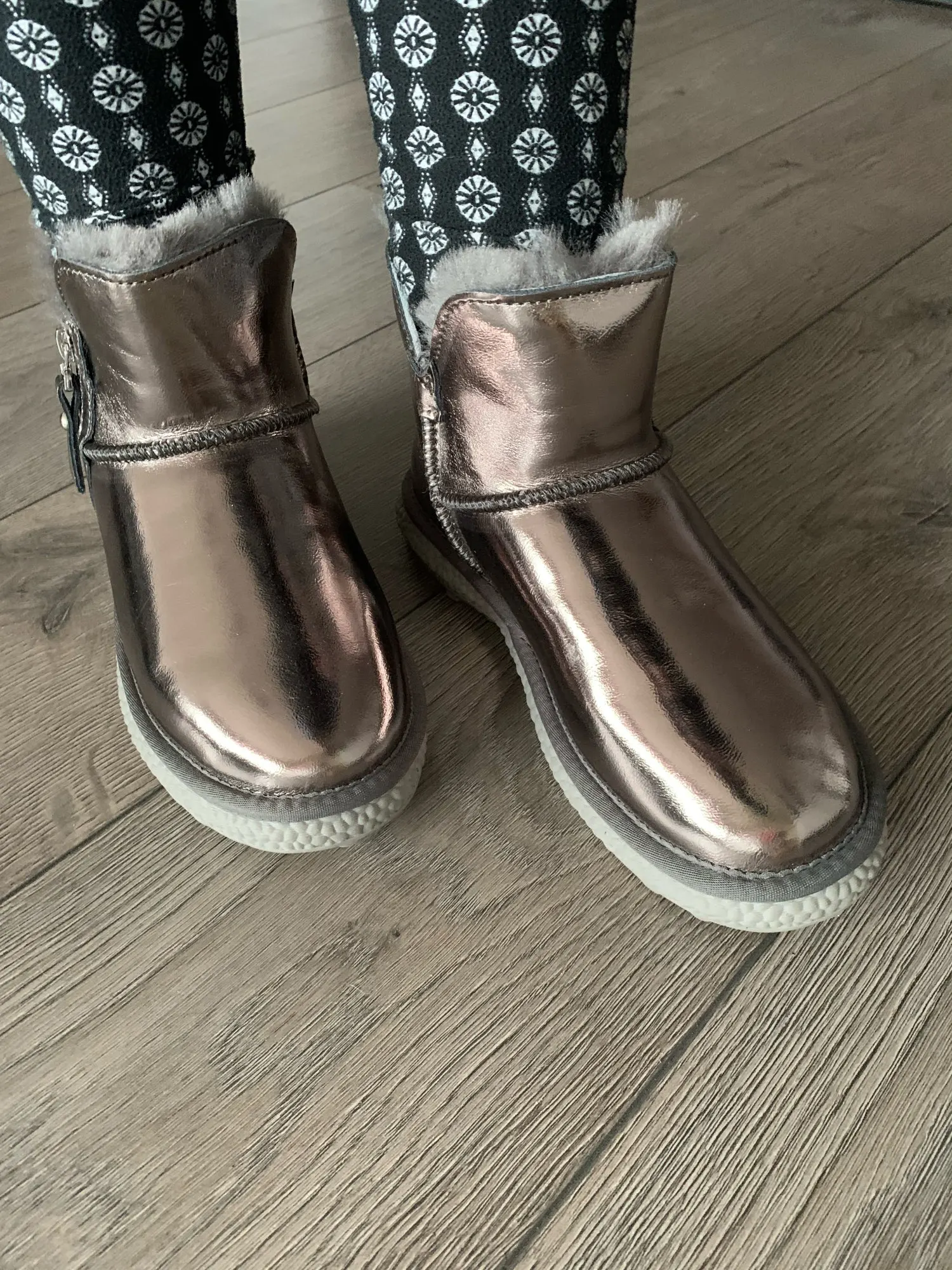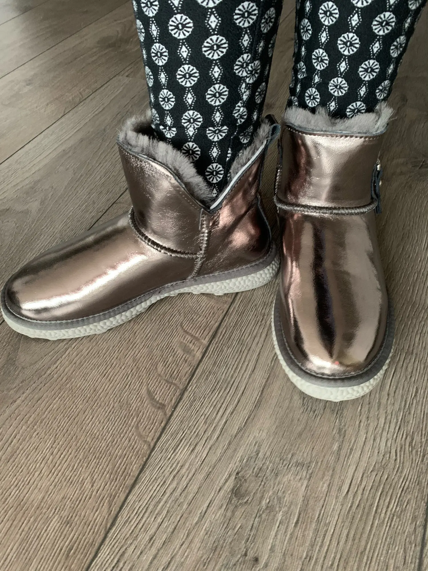 Качество кажется очень хорошим на данный момент, носила их уже несколько месяцев без остановок, кожа мягкая, мех приятный и толстый. Кажется водонепроницаемым, как и рекламируется. Очень теплый. Следуя таблице размеров, все хорошо сидят. Нравится уникальный внешний вид.