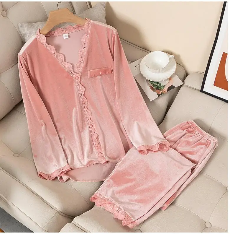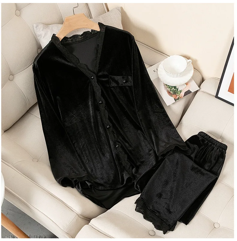 Пижама женская бархатная, с длинным рукавом, на осеньзиму