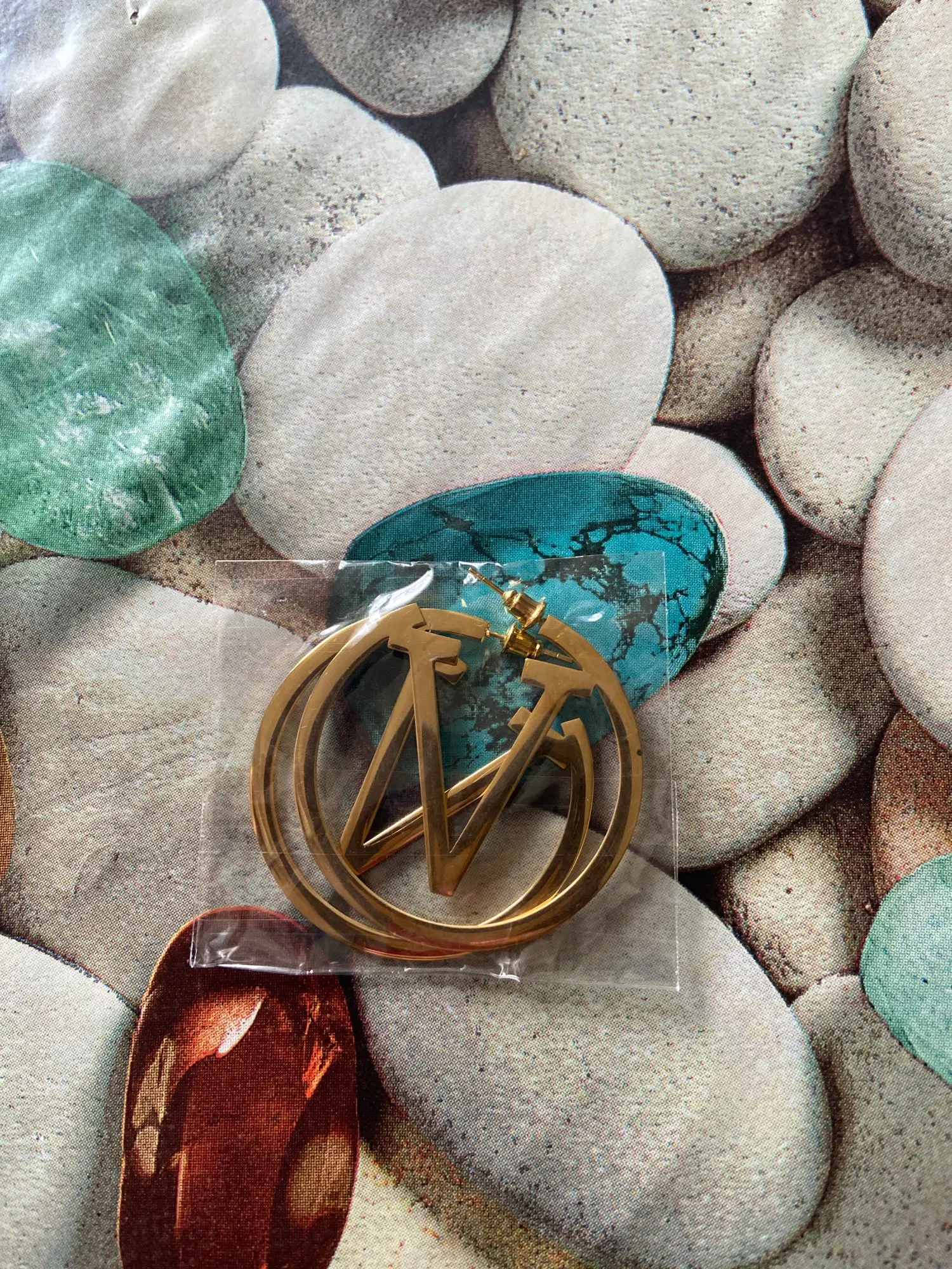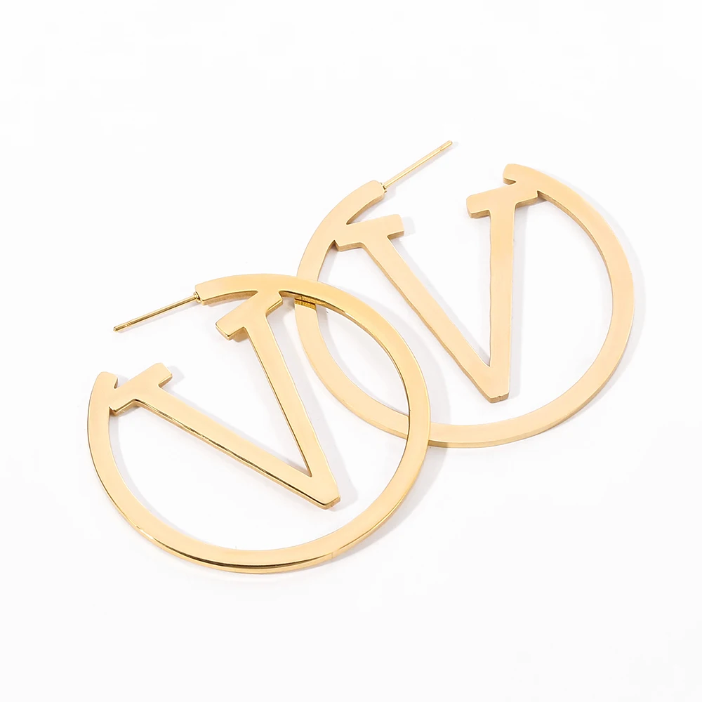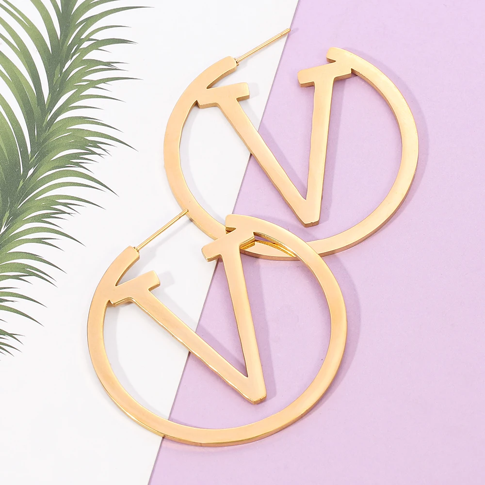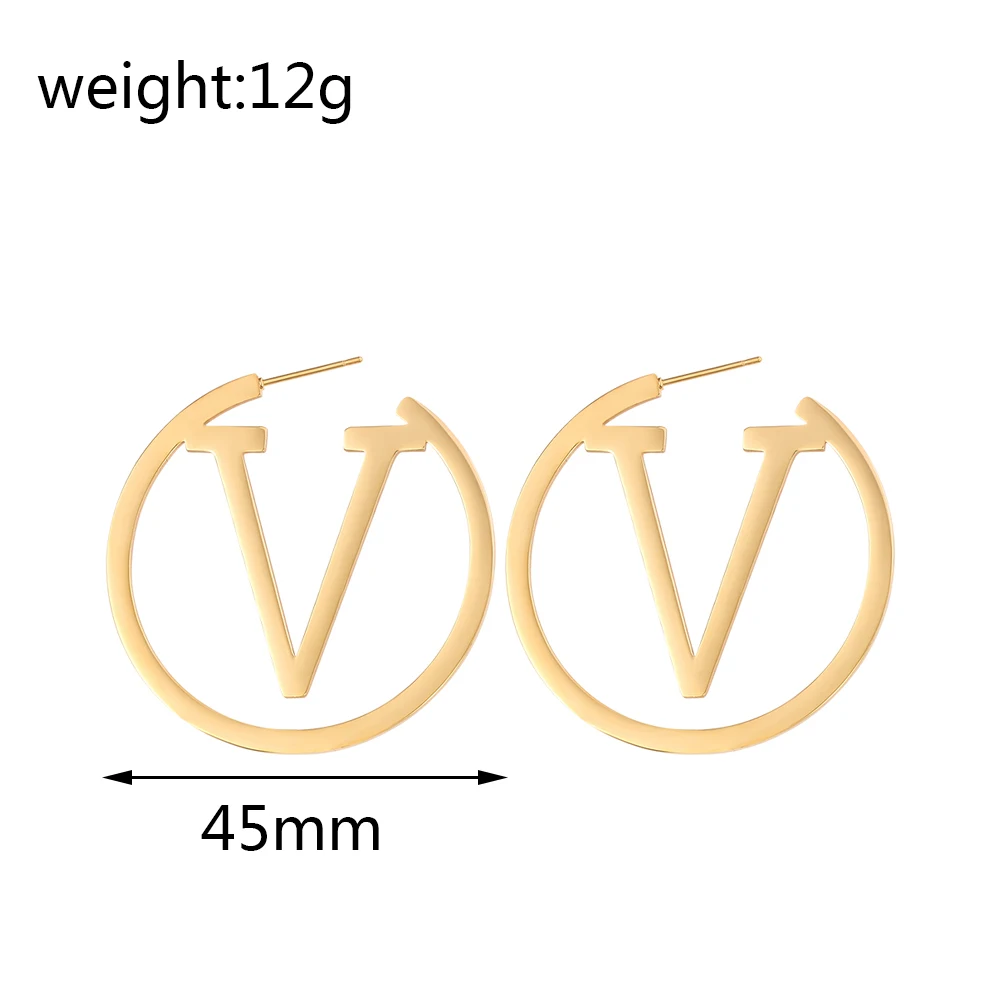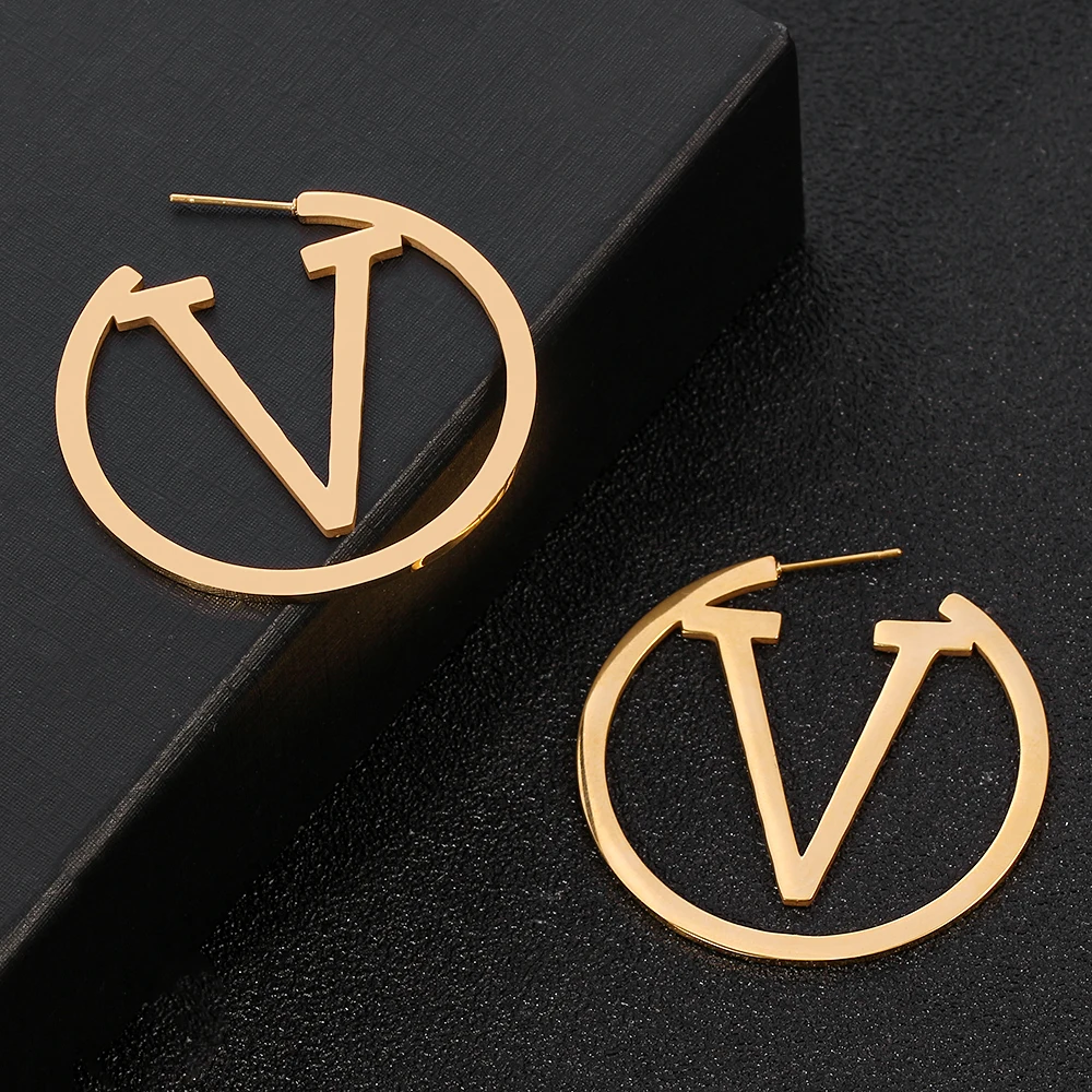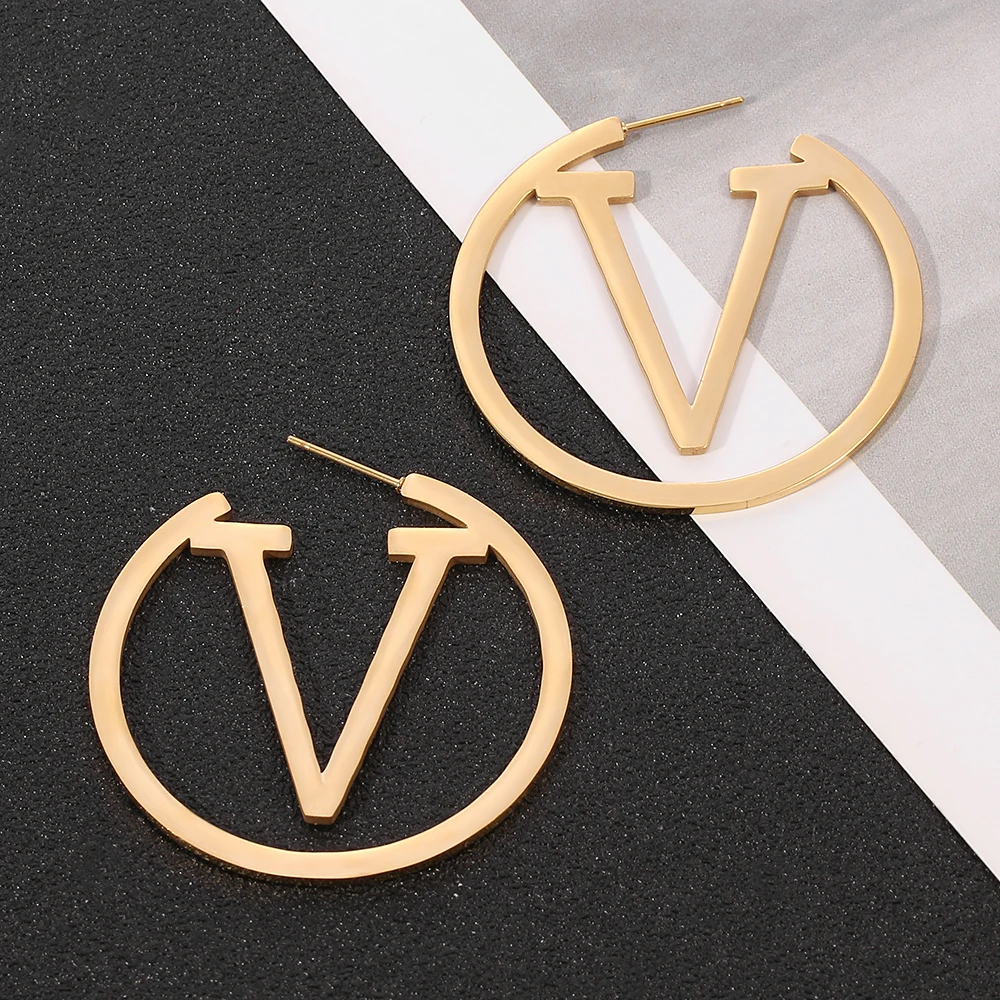 Женские серьги из нержавеющей стали с кольцом и буквой V