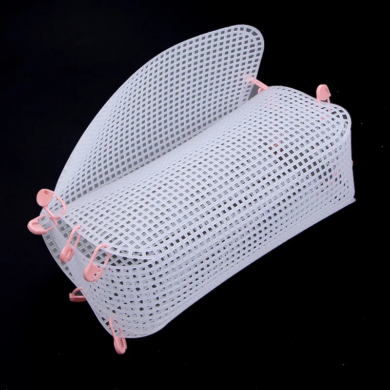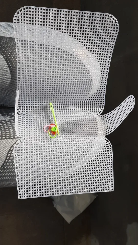 Основа для плетения сумки хорошего качества, сама сетка прочная, упругая, хорошо держит форму. В наборе 4 (?) пластиковых фиксатора и 2 пластиковых иголки с большим ушком (для толстой пряжи, тесьмы или ленты). Продавец очень быстро отправил заказ. Спасибо ему.