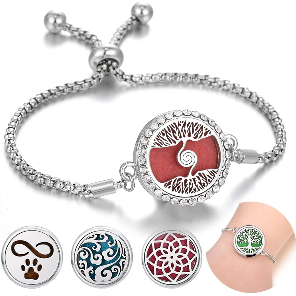 2020 новый браслет для ароматерапии ювелирные изделия с диффузором Регулируемая цепочка хрустальные стразы Древо жизни Арома духи медальон браслет