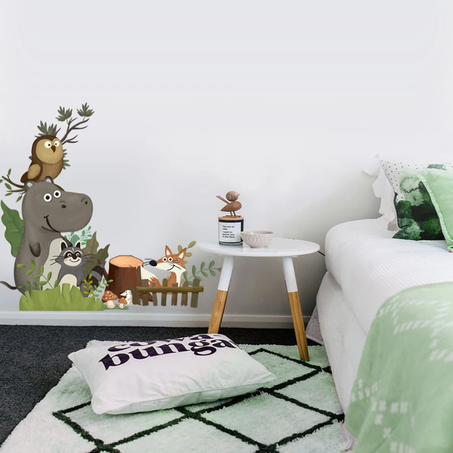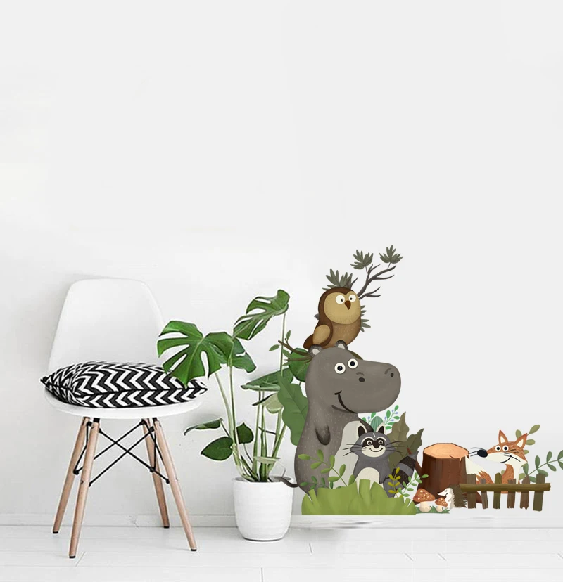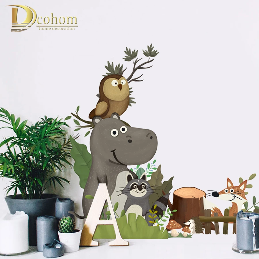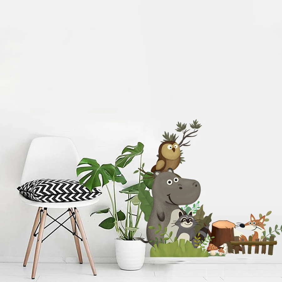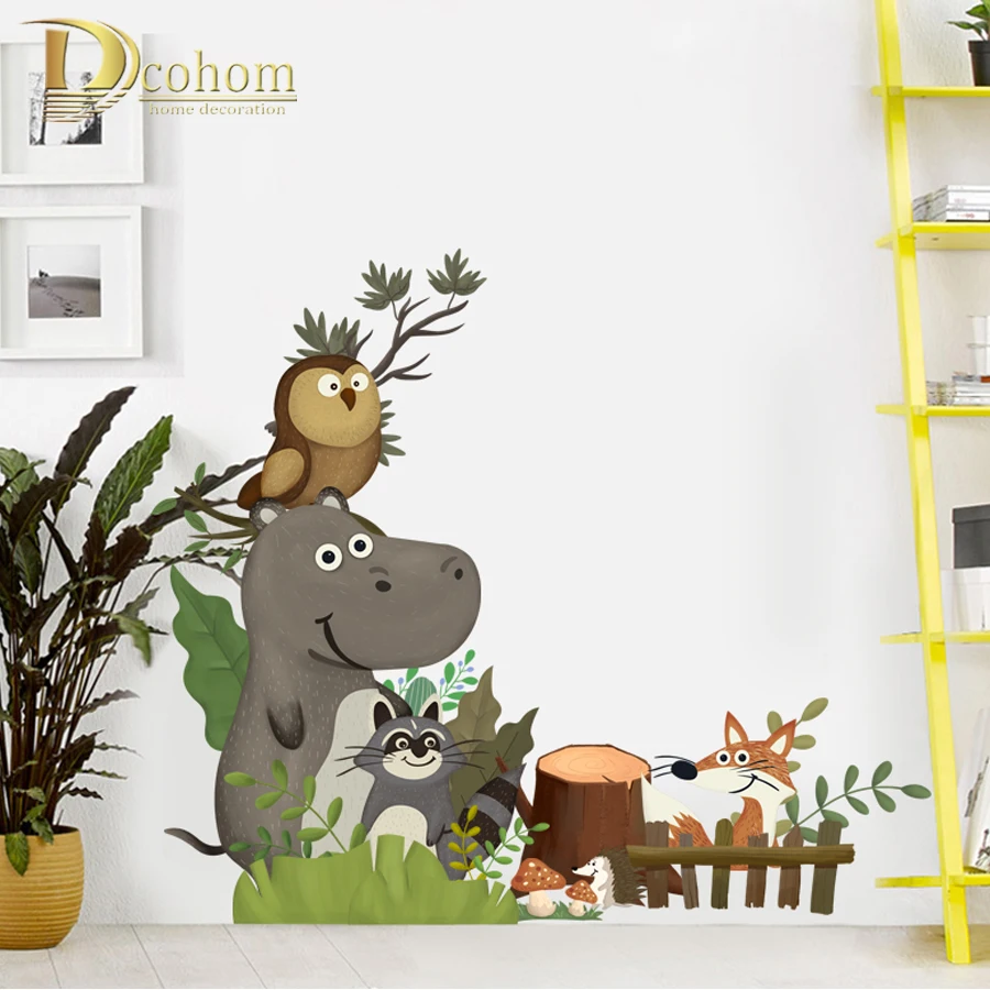 Животные, бегемот, наклейки на стену, зеленый лес, Мультяшные стикеры на стену для детской комнаты, домашний декор, наклейка на дверь детской комнаты