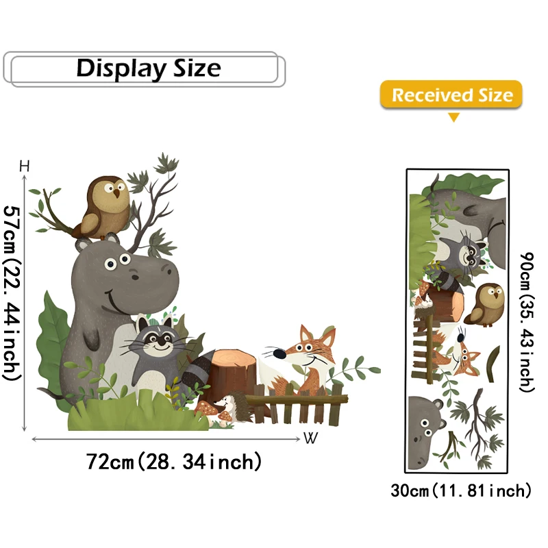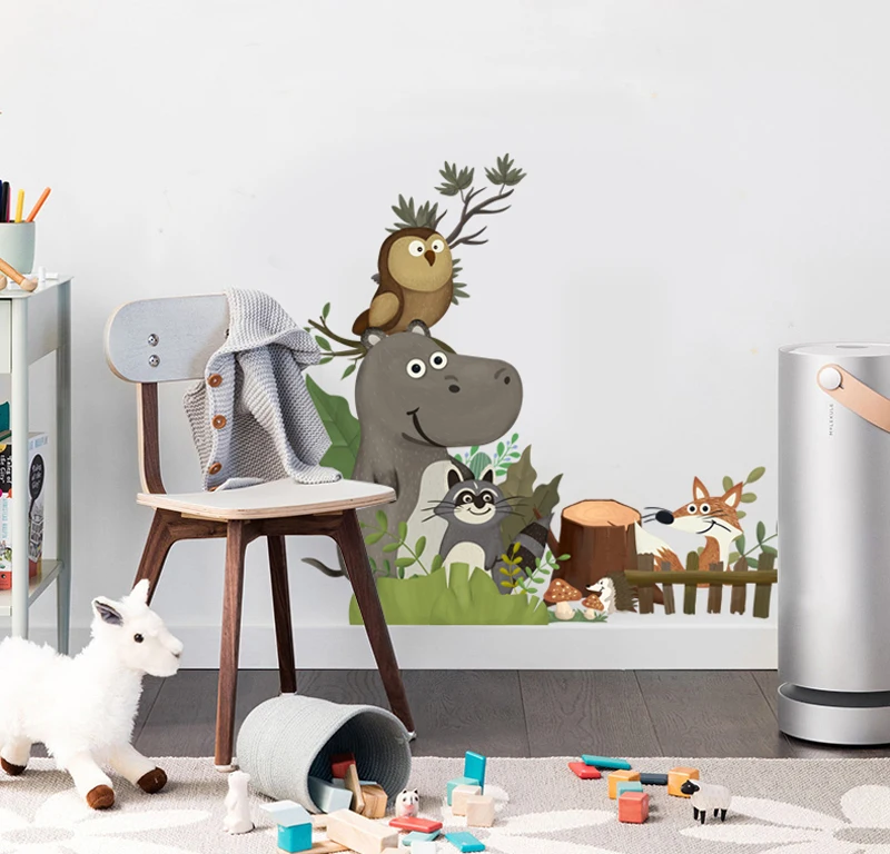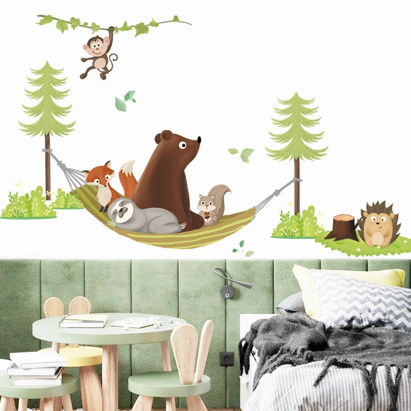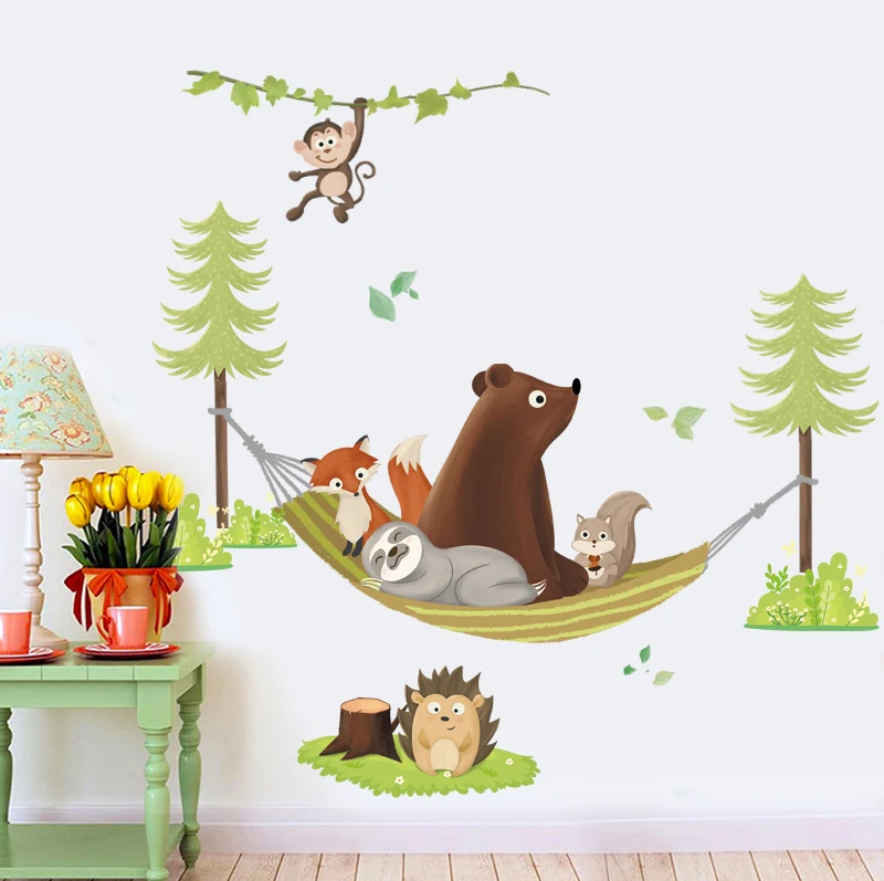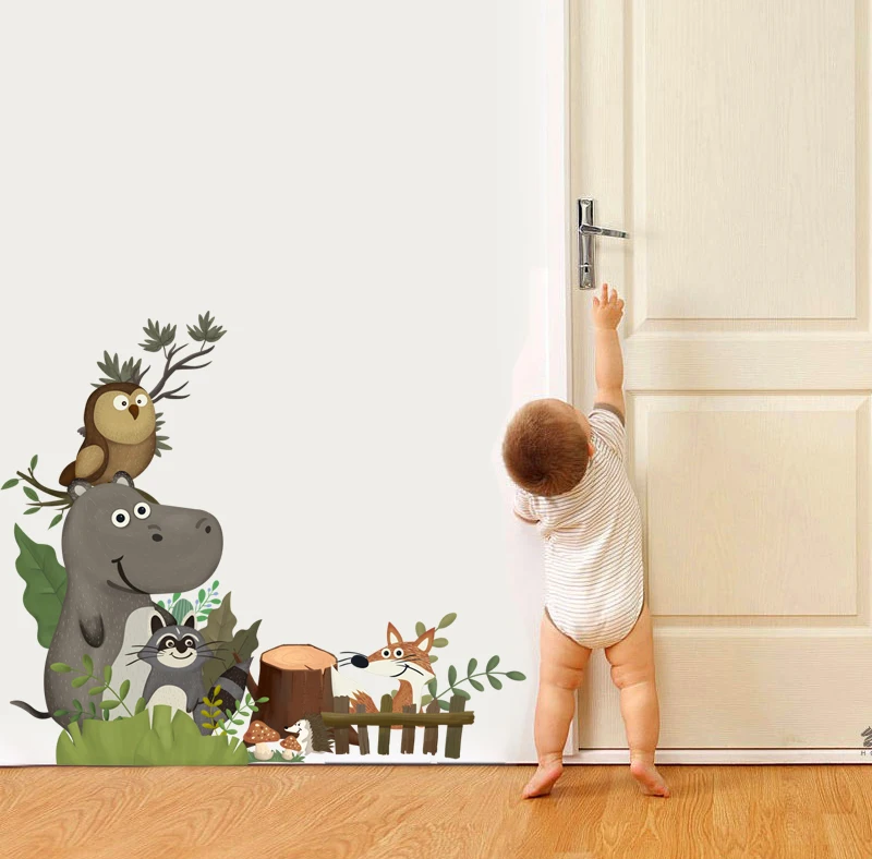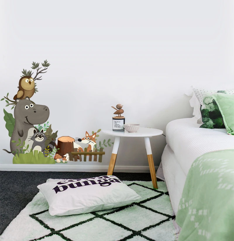 Животные, бегемот, наклейки на стену, зеленый лес, Мультяшные стикеры на стену для детской комнаты, домашний декор, наклейка на дверь детской комнаты