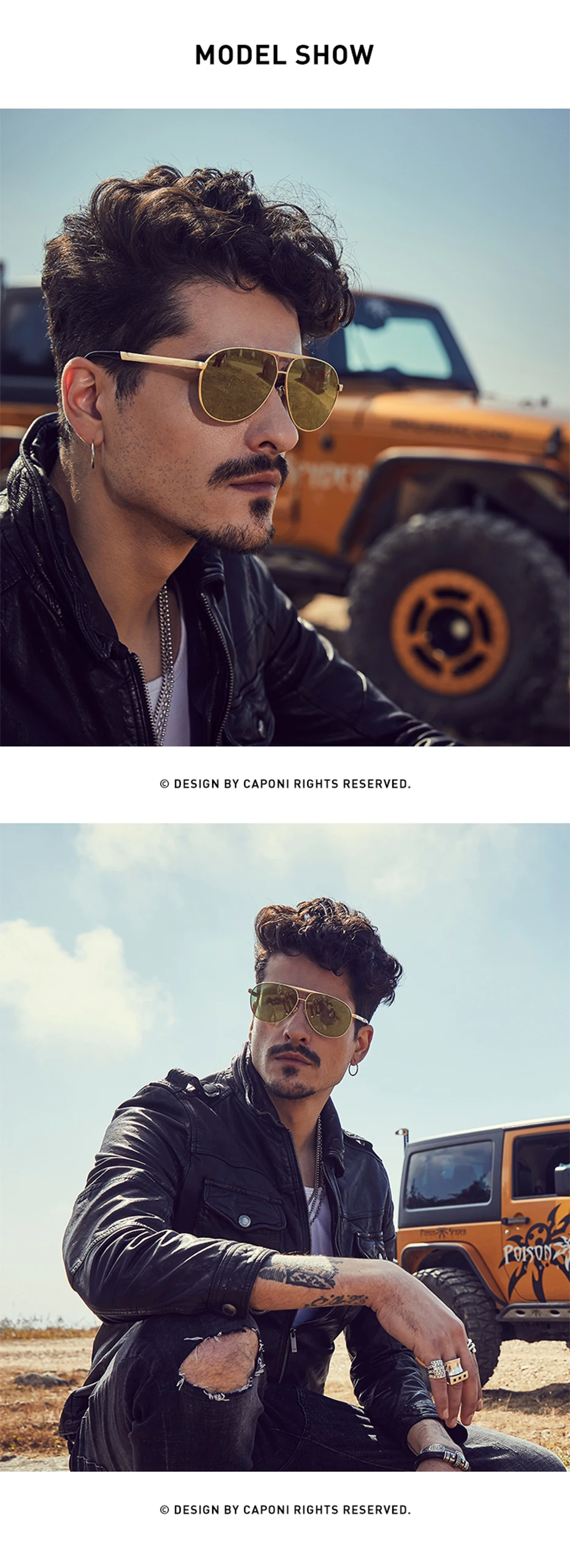 Мужские солнцезащитные очки CAPONI, роскошные брендовые Фотохромные Коричневые поляризованные солнцезащитные очки для вождения, BSYS8657