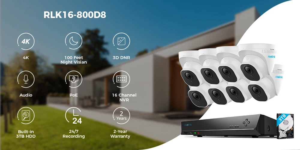 Reolink RLK16-800D8 8MP 4K Ультра камера HDD система 16ch PoE NVR и 8 ip-камеры с питанием по PoE Комплект наружного наблюдения