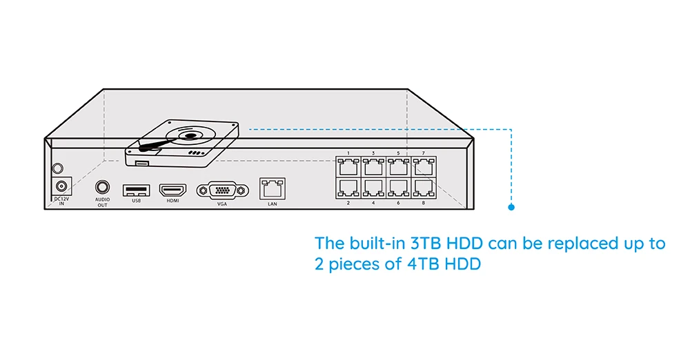 RLK16-800D8 с предустановленных 3 ТБ HDD. Если вы хотите немного больше, вы можете изменить 3 ТБ HDD из 2 предметов 4 ТБ HDD, поддержка до 8 ТБ.