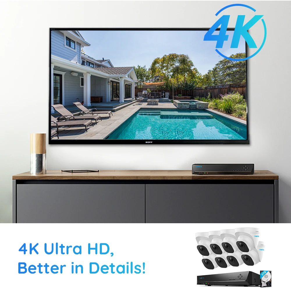 4K Ultra HD (8MP, 3840x2160) обеспечивает почти в 4 раза четкость, чем 1080p. Этот Улучшенный набор может показать лучшие ключевые детали в vividness, даже когда вы цифровой зум, так что каждая неясность в видео кадрах, которые вы встретили, очищается до.