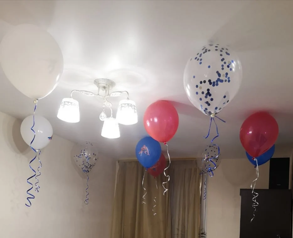 Шары красивые, при надувании гелием шары с конфети остались лежать на полу (видимо тяжелые). Ни один не лопнул. Отправление и доставка быстрые