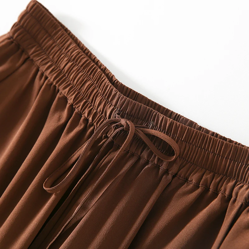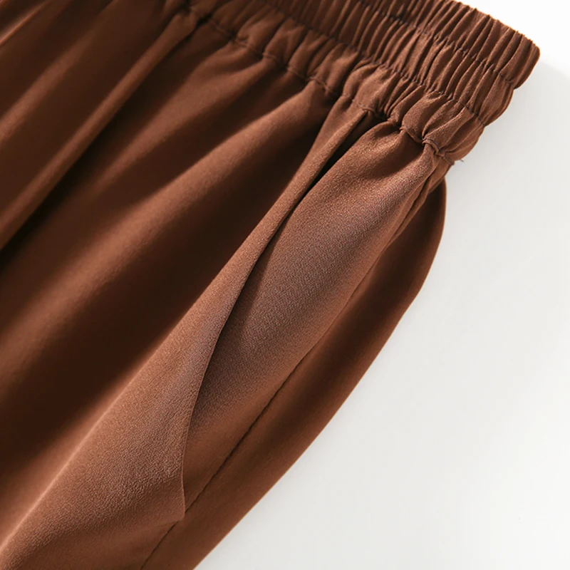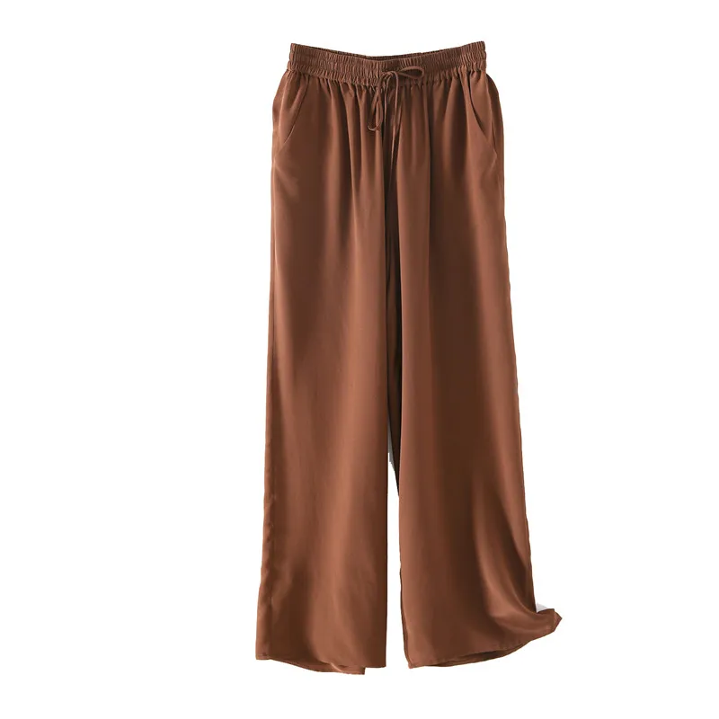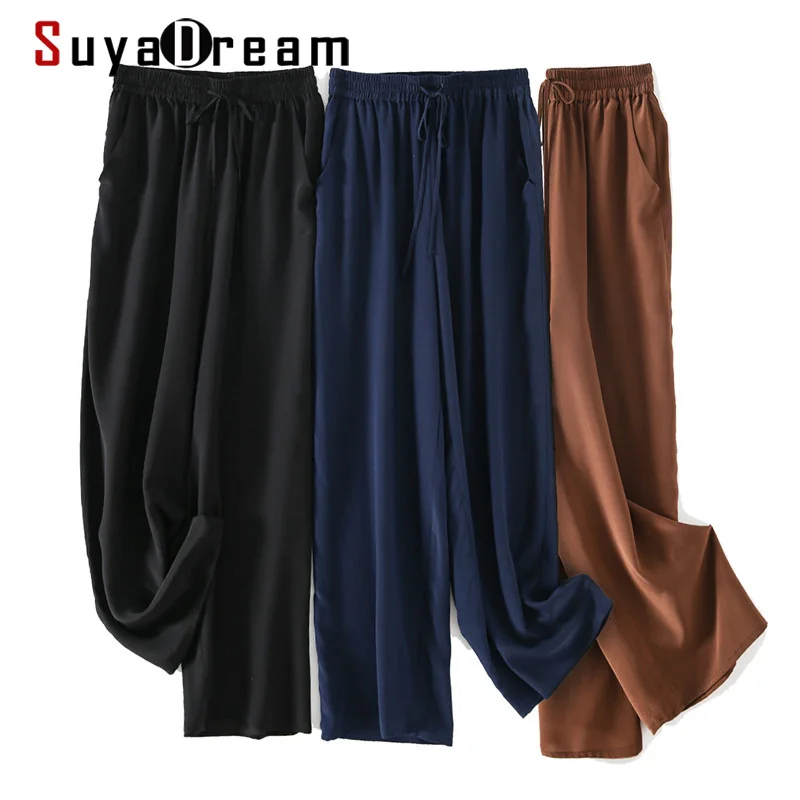Женские длинные брюки SUYADREAM, элегантные однотонные штаны из 100% натурального шелка, крепа, с эластичной талией и широкими штанинами, осень 2020