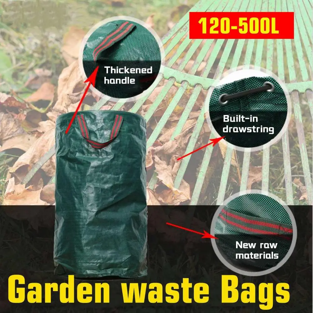 Мешок для садовых отходов Для листья, ветви, травы и прочих садовых отходов Цвет зеленый Материал: полиэтилен 120L: Диаметр: около 45 см Высота: около 76 см Ёмкость: прибл. 120 литров Максимальная грузоподъемность: 50 кг 60L: Диаметр: около 45 см Высота: около 38 см Максимальная грузоподъемность: 30 кг 272L / 72 галлонов 67 × 76 см 300L:67 см x 84 см 500L:80 см x 100 см 4 ручки Итого: 2 ручки для переноски и 2 разряда ручки Посылка в комплект входит: 1 * мешок для садовых отходов