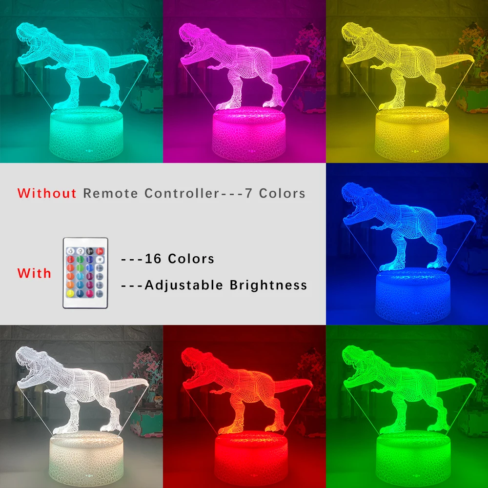 Светодиодный ночсветильник с динозавром, 3D настосветильник лампа с сенсорным управлением, с дистанционным управлением, декоративный подарок для малышей, детей, детей, на день рождения, для подруг