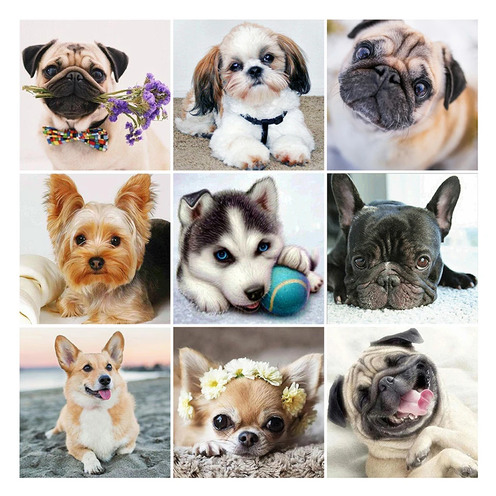YI Яркие Камни в форме ромбаНабор для рисования с круглыми камнями и полотном живопись изображением симпатичного мопса или DIY Бриллиантовая мозаичная фигурка животного Вышивка Изображение Стразы домашний декор